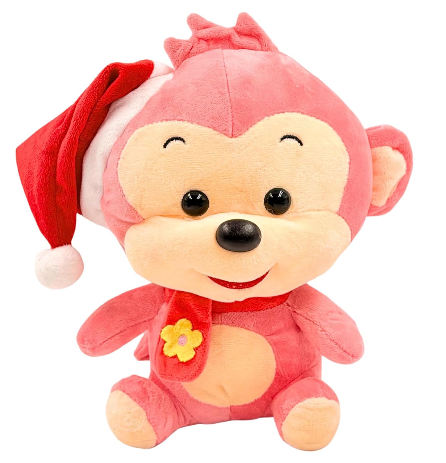 Tickles Christmas Smiling Monkey with Santa Hat & Scarf Soft Stuffed Plush Animal Toy for Kids Boys & Girls Birthday Gift (Color: Pink, Size: 25 cm)