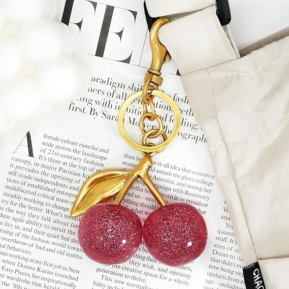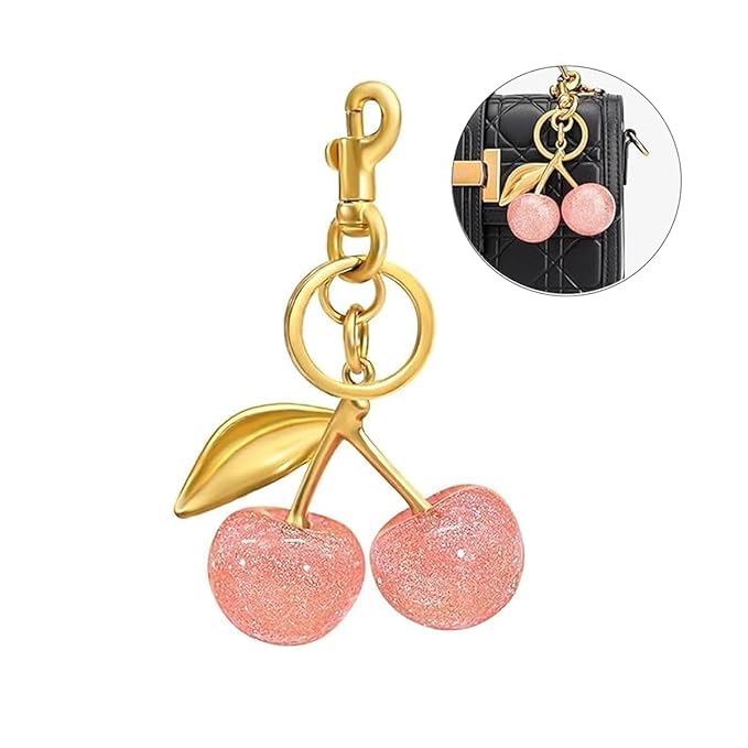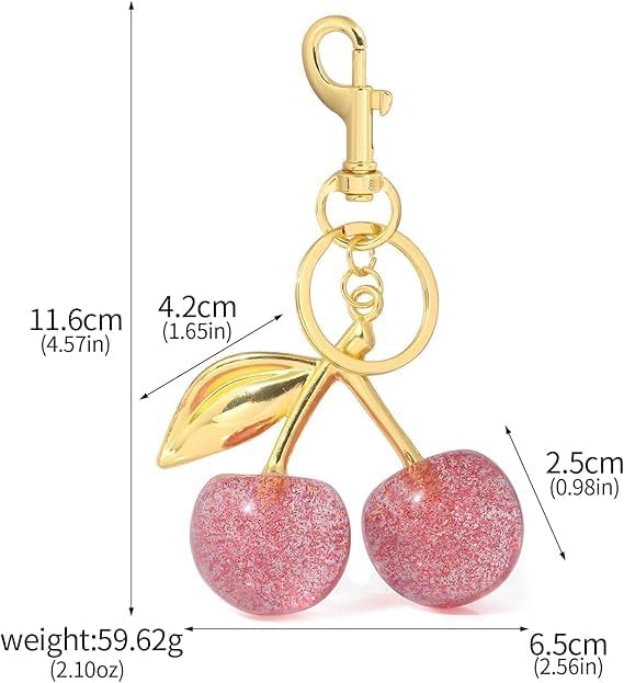 Glitter cherry keychain,with a shiny and smooth surface, very beautiful.This charming cherry key chain features a vibrant red color with elegant gold accents, highlighting a playful cherry design. It includes a durable gold alloy chain and a practical key ring, combining aesthetic appeal with everyday functionality. This versatile cherry bag charm can be used with backpacks, wallets, handbag, cross-body bags, and even car pendants, making it suitable for various occasions. Whether you’re heading out for a casual day or a special event, this glitter cherry purse charm is a delightful addition to your collection.These cherry charm for purse are perfect for various special occasions. Whether it’s a birthday, a gesture of friendship, a Christmas celebration, or a Valentine’s Day surprise, this gift is thoughtfully presented to convey warmth and affection. It is an ideal gift choice for expressing your love.