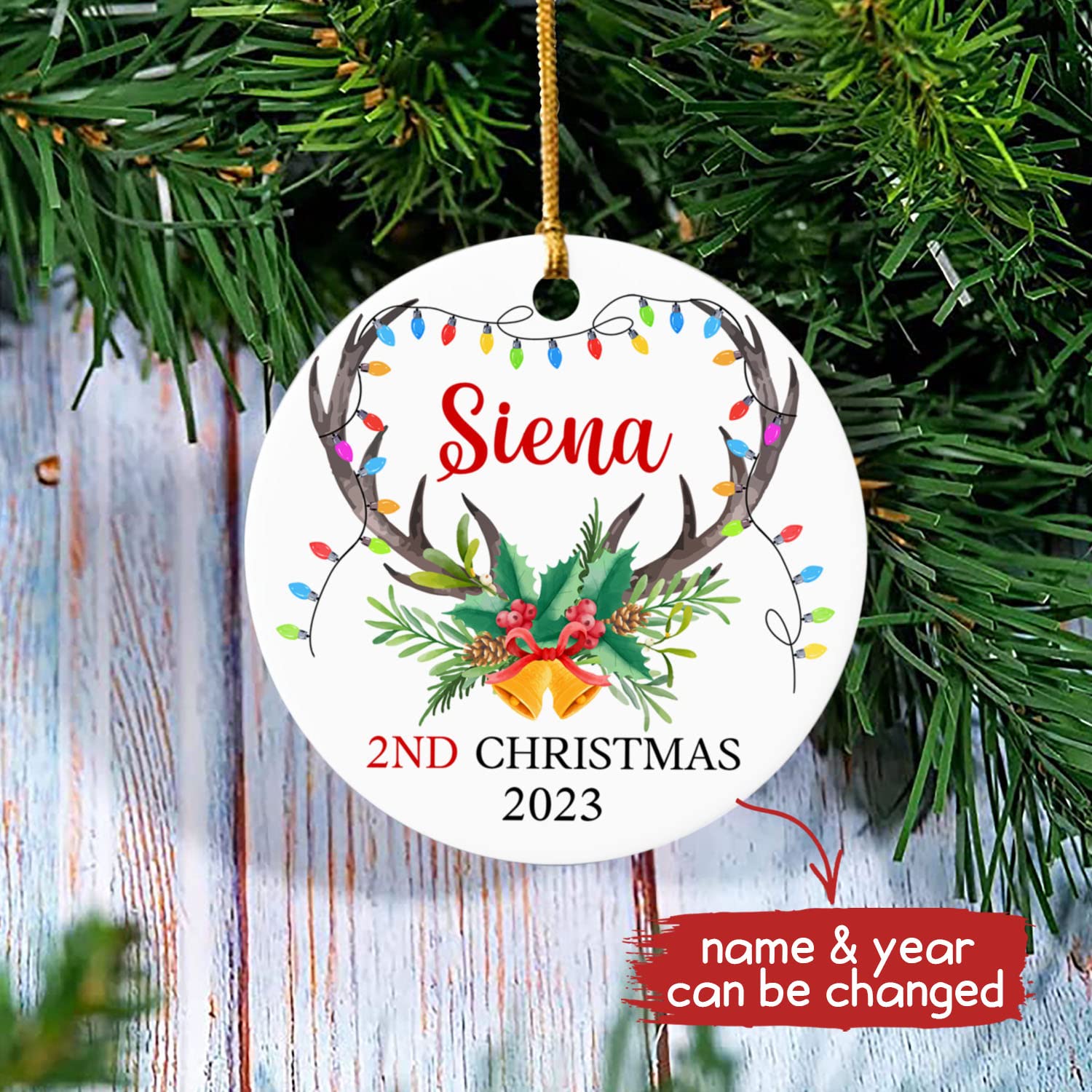 Baby Boy Girl Christmas Ornaments, Personalized Baby’s Second Christmas Deer Ornament, Custom Baby’s Name & Year Keepsake Gifts For New Mom Dad Baby Family, Reindeer Baby’s 2nd Christmas Ornament