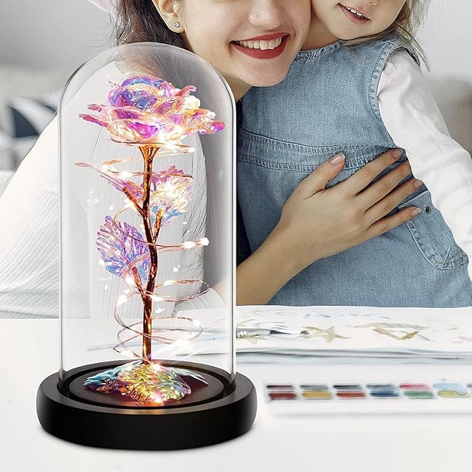 šPerfect Rose Flower Gifts For Mom Women Girls:Romantic gifts for her,birthday gifts for women. Her day gifts from daughter,gifts for teenage girls. Grandma gifts. Romantic Sweet Warm Gifts for her women mom Gifts Colorful rose means that the roses are perfectly and eternally stored in A Glass Dome,the Glass Dome is made of transparent glass. Both glass and base are easy to clean. Glass dome rose gifts also would look amazing during her Day,Wedding,anniversary,graduation,etc.