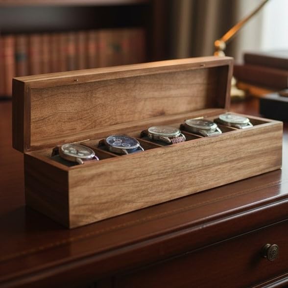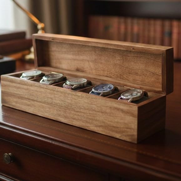 Elegant Design & Craftsmanship: Handcrafted from rich natural wood, this stylish watch box features a sleek finish and precision-cut edges that enhance any dresser or desk decor.