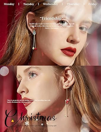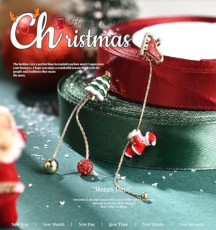 2 Pcs Christmas Earrings for Women, Mismatched Earrings with Tassel Pendant, Festive Holiday Jewelry for Christmas Parties and Gifts, Santa Claus Themed Asymmetrical Earrings Festive Christmas Earrings: A pair of stylish and elegant Christmas earrings for women, featuring unique tassel design and Christmas-themed elements; Suitable for holiday gatherings, Christmas parties, and festive celebrations; Lightweight and comfortable for all-day wear Unique Asymmetrical Design: These mismatched earrings showcase a creative and trendy asymmetrical style; The Santa Claus tassel pendant adds a playful touch to your Christmas jewelry collection; Suitable for those who love distinctive and eye-catching accessories Versatile Holiday Jewelry: Suitable for various occasions including birthday celebrations, Mother’s Day gifts, Valentine’s Day gifts, and themed events; The Christmas earrings complement different outfits and hairstyles, making them a have for the festive season Premium Materials: Crafted with durable materials that ensure long-lasting wear; The christmas earrings are lightweight and comfortable, suitable for extended use during family gatherings and Christmas makeup sessions; Designed to be gentle on the ears Thoughtful Christmas Gift: A present for loved ones during the holiday season; These Christmas earrings for women are beautifully packaged, making them an choice for gifting on Thanksgiving celebrations and other special occasions