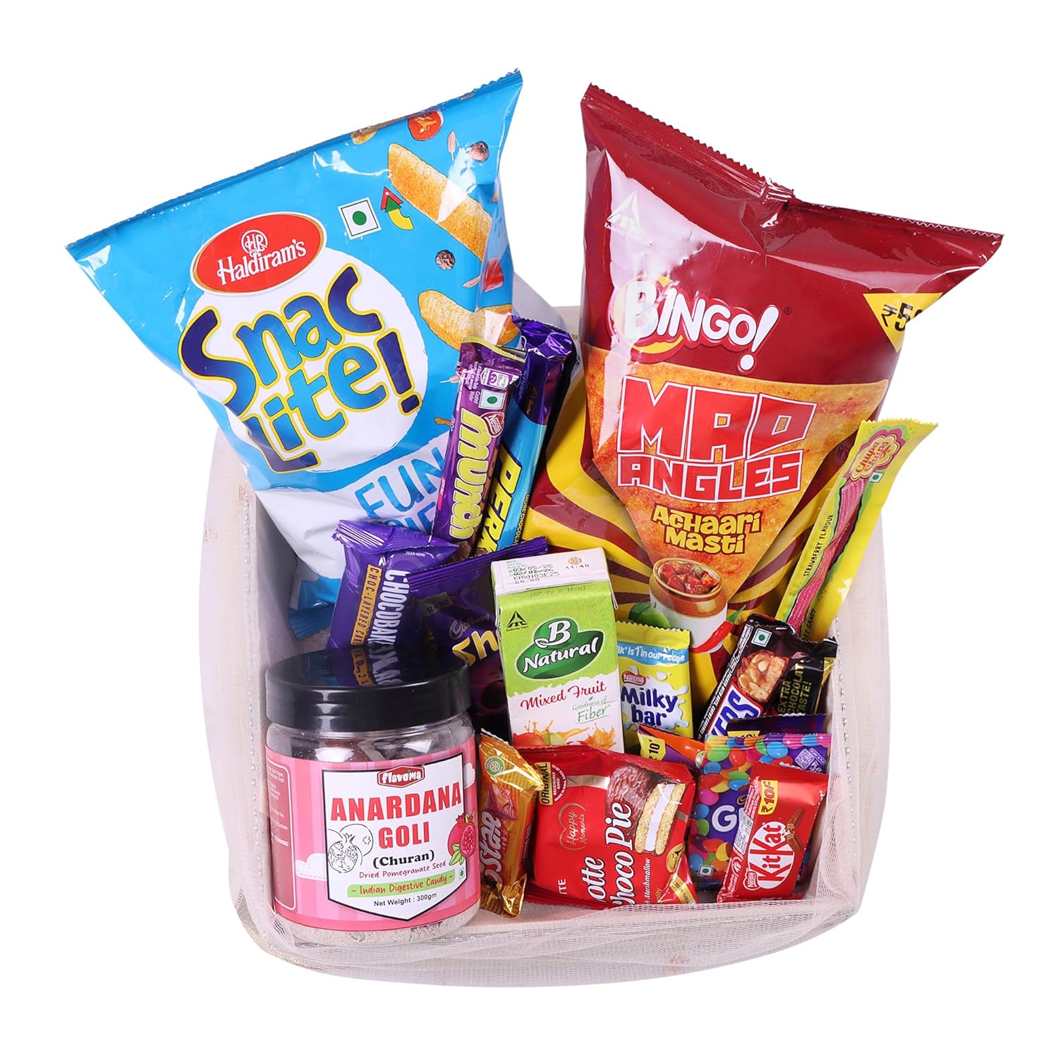 PREMIUM CONTENTS: Features popular Haldirams snacks along with a variety of chocolate treats and traditional namkeen selections