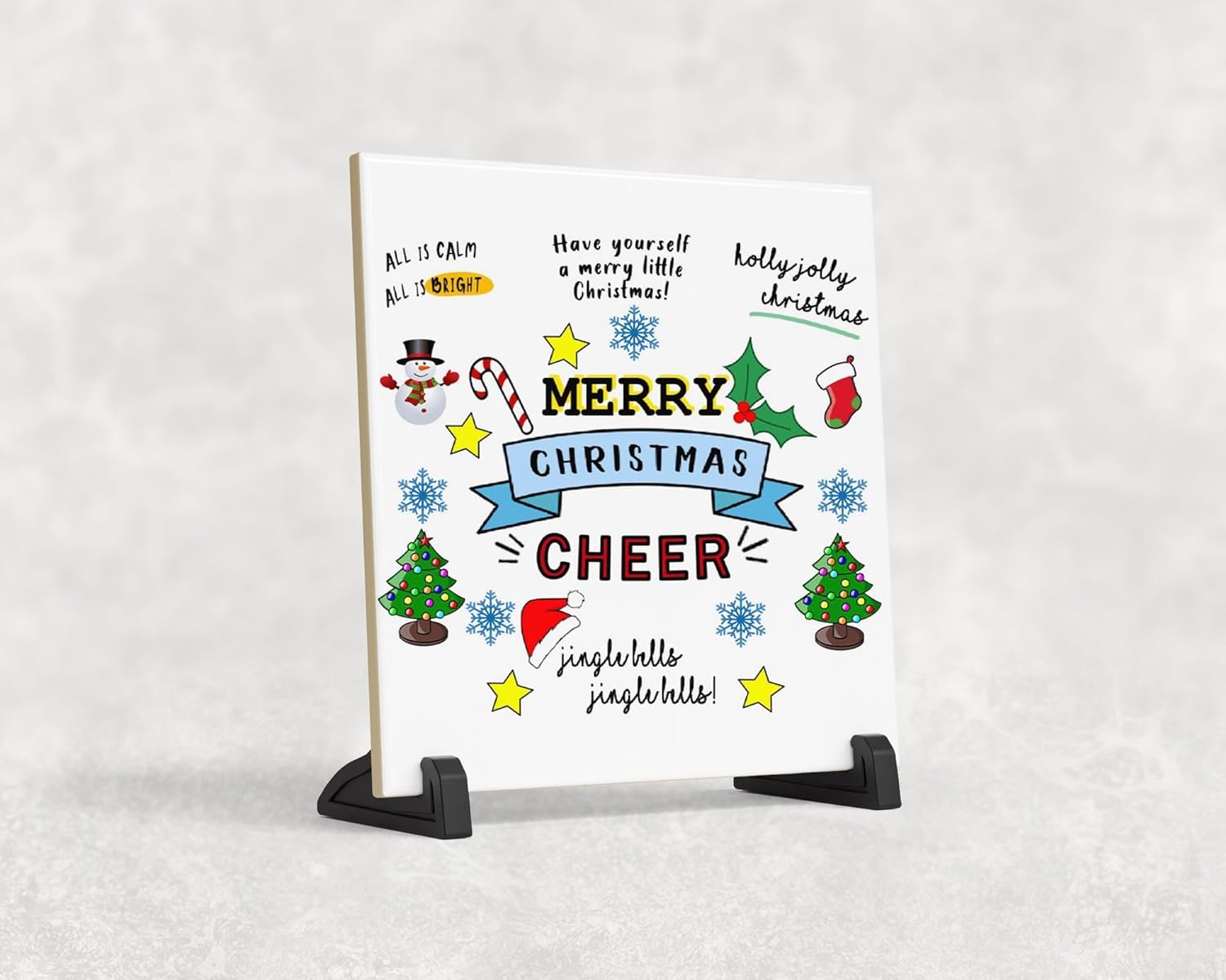 This beautifully printed ceramic tile features a cheerful “Merry Christmas” message.