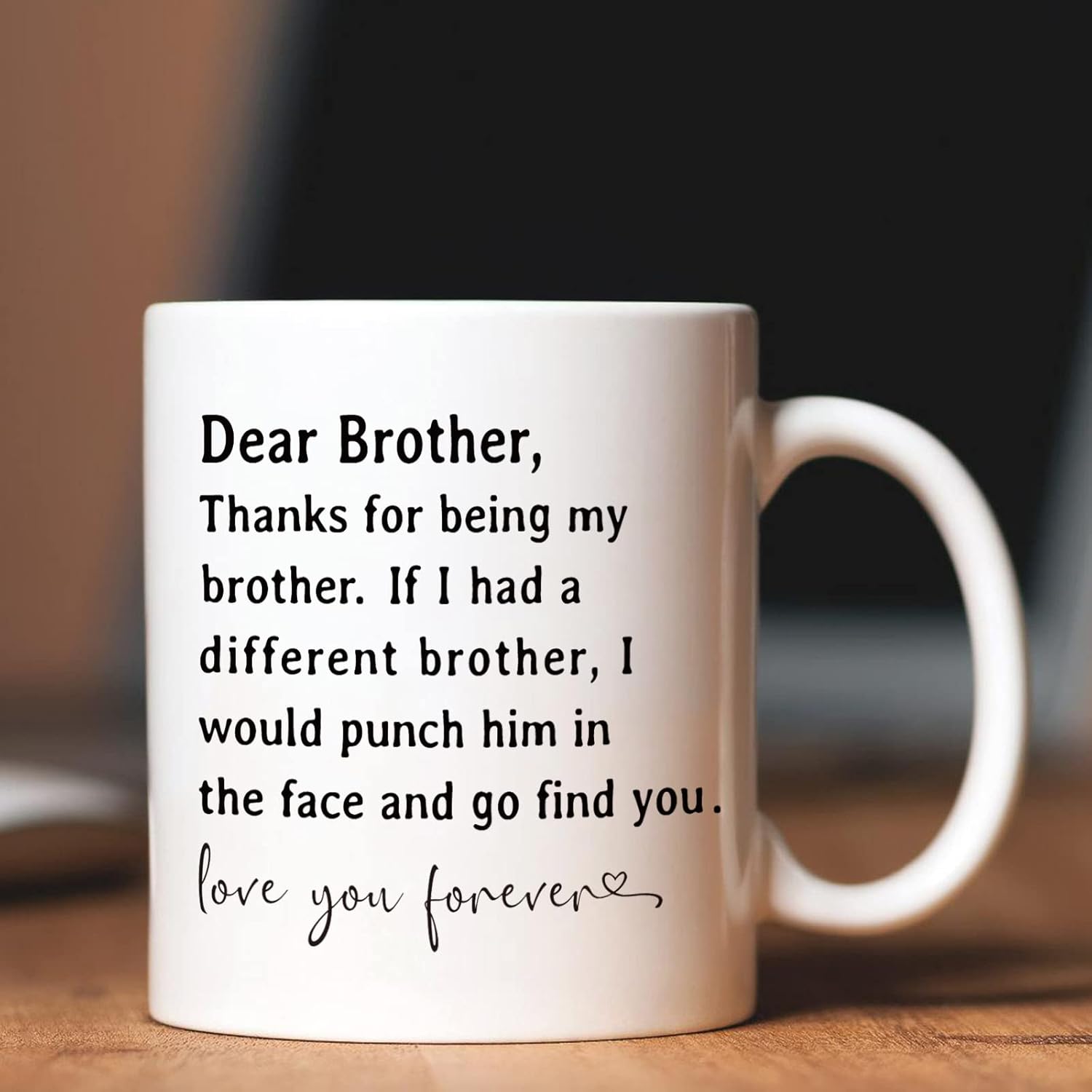 【High Quality Brother Coffee Mug】 It is a white 11 oz ceramic mug with eco-friendly ink printed on both sides. Design professionally and permanently printed on the mug. The print will never fade no matter how many times it is washed, and it is perfect for hot and cold beverages.