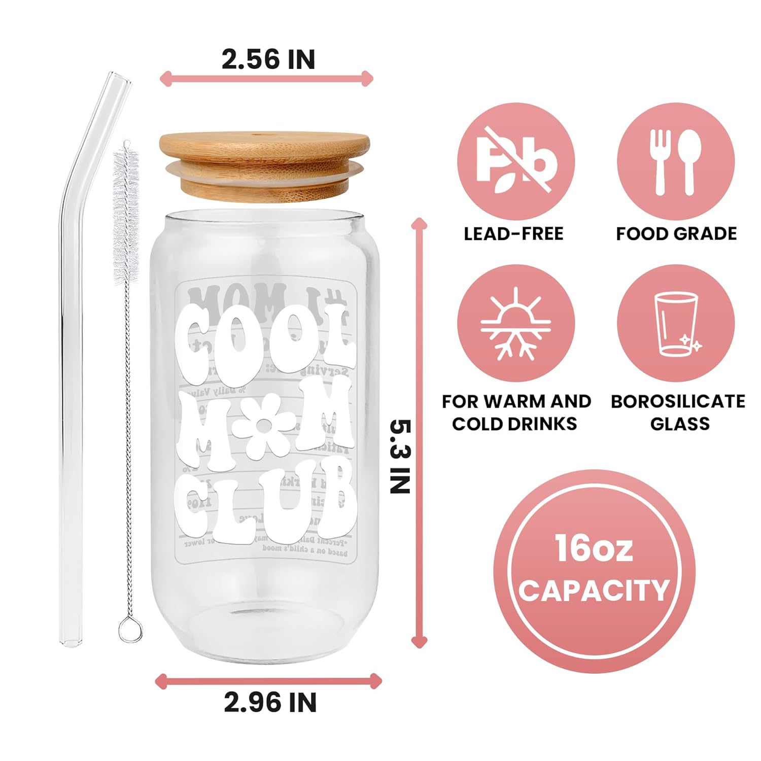 GIFT-BOX INCLUDES: This box comes with 1 x 20 Oz Can Glass, 1 x Matching Bamboo Lid, 2 x Reusable Glass Straws and 1 x Straw Brush. Bamboo lid keeps your drink fresh and prevent spills. The straw brush is specially designed to thoroughly clean the inside of the straw, so you can be sure that your drink is always safe and clean.