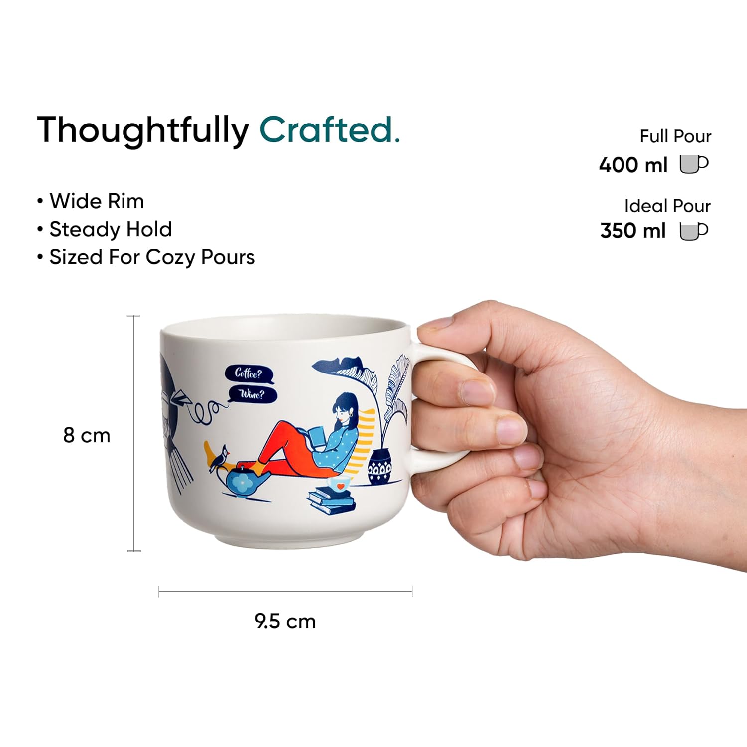 Included components: Set of 2 Coffee Mugs (Cappuccino Mugs), 350ml each