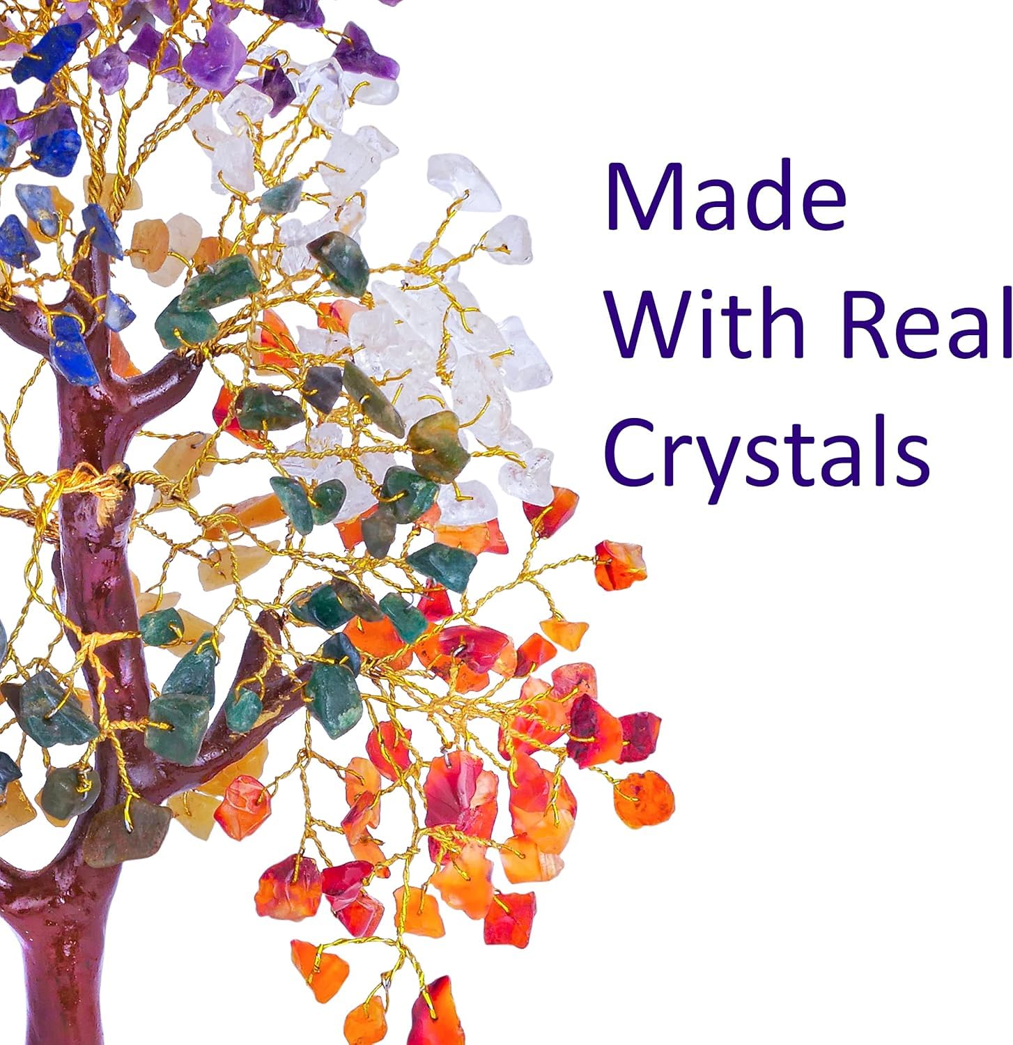 Seven Chakra Crystal Tree : Natural Chakra Crystal Handmade Golden wire Branches Money Good Luck Tree of Life Size: 11 Inch* .This fortune tree brings clarity to the intellect, maintains concentration, cleans emotional aspects, spreads compassion and power with cosmic energy.