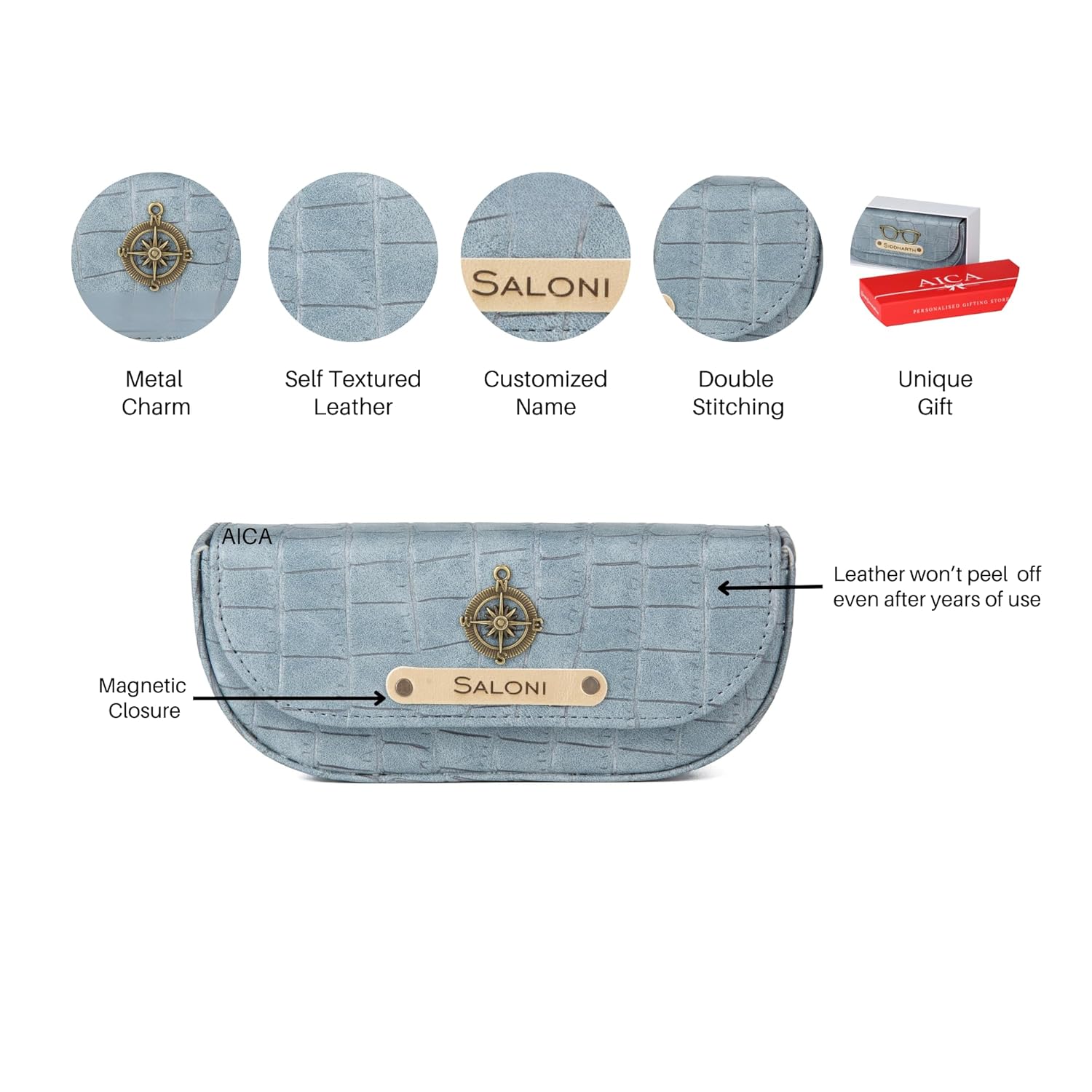 PERSONALISED NAME & CHARM : Are you looking to stand out with a unique matching accessories ? Then this personalized self-textured leather Wallet, Passport Cover, Bag Tag & Sunglass Case Box with the option to put your name and charm on it is perfect for you. Plus, you can choose from a variety of colors to make it your own. Style your fashion with this matching color Clutch Wallet & Eyeglass Cover , a perfect travel accessory .Perfect Gift for Brides & Brides Maid.