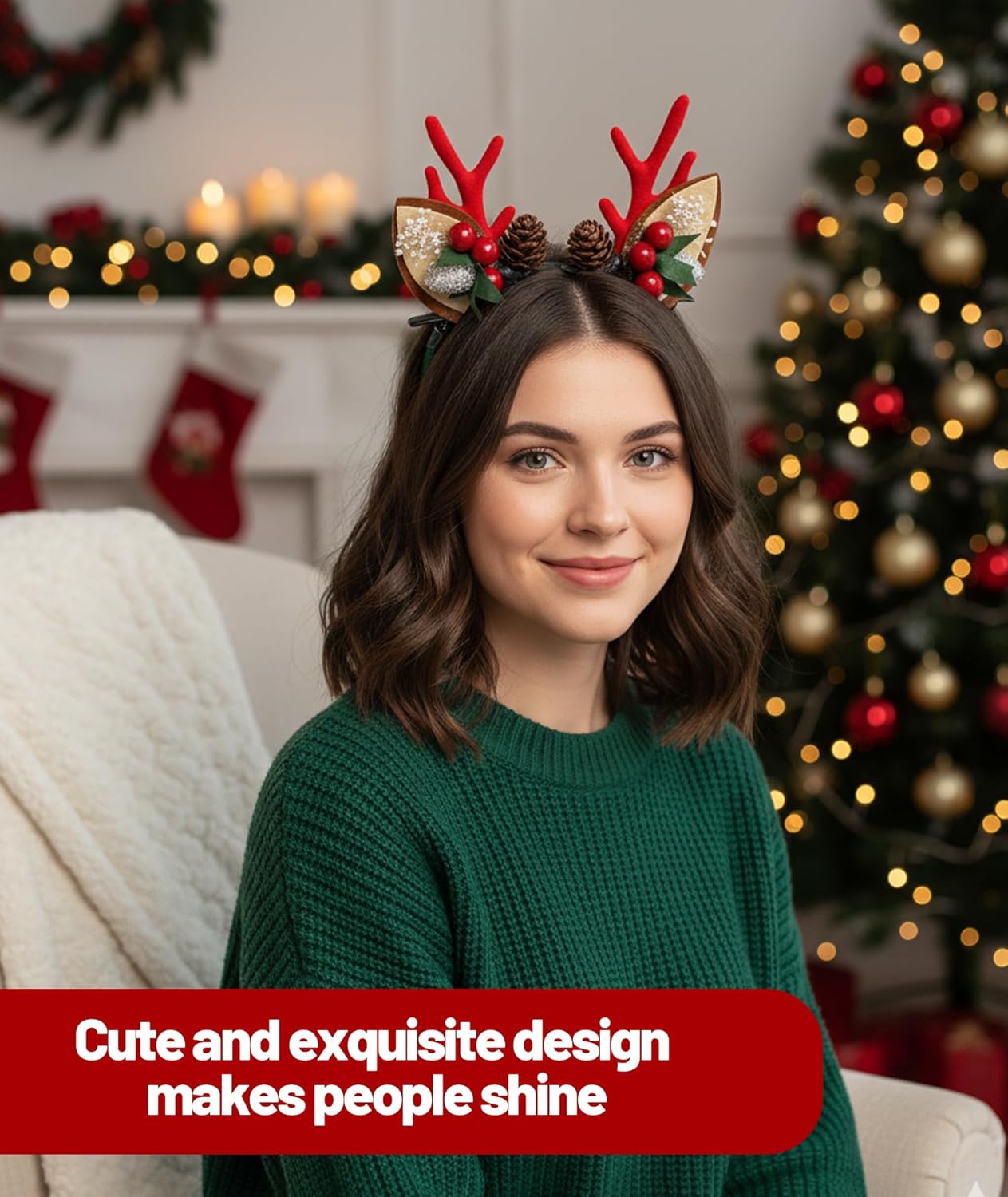 Festive Hair Clips, Christmas Hairband, Deer Antlers Headband, Holiday Party Accessories, Christmas Gift, Suitable for women Festive Christmas Hairband: These deer antlers headband clips add a festive touch to your holiday look; The stylish design complements various hairstyles for women during Christmas celebrations Durable and Lightweight: Made with quality materials, these Christmas hair clips are durable yet lightweight; They stay securely in place ,Convenient to carry when going out. Versatile Holiday Accessory: Christmas parties, photo booths, and school events; These deer ears Christmas hair clips also suit weddings, birthdays, and beach parties for year-round use Convenient to Use: The simple clip design makes these deer antlers headband hair charms accessories easy to attach and remove; They maintain their shape throughout the holiday season Thoughtful Christmas Gift: A charming present for loved ones during the festive season; These Christmas hair clips for women make delightful gifts that spread holiday cheer
