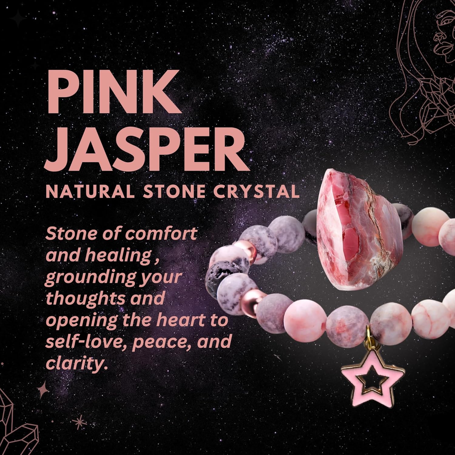 ⭐️2: Charm Bracelet Made from Natural Crystal Stones Pink Jasper & Lava Beads