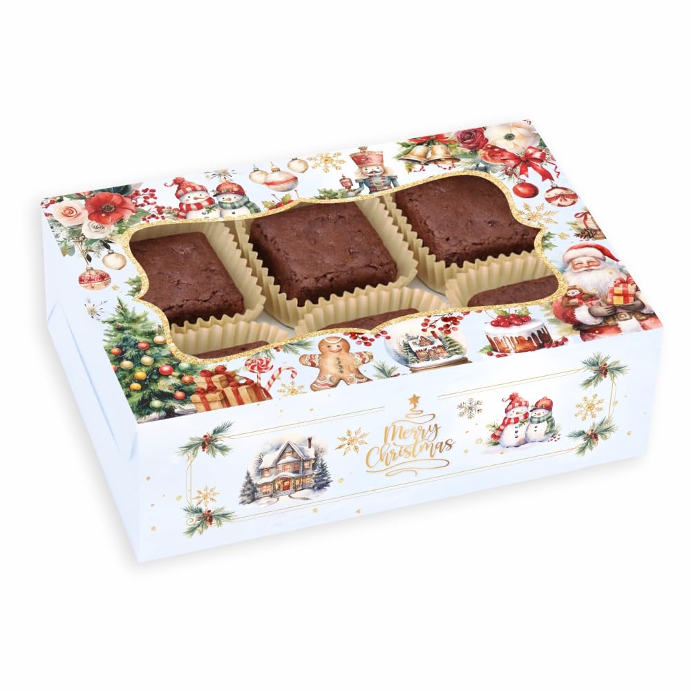 Christmas Special Hamper Box / Cake Box / Cupcake Box (Holds 6 Cupcakes) Dimensions – LBH: 9.25 x 6.25 x 3.25 inches This festive season, elevate your holiday bakes with our delightful Christmas-themed Hamper Box, designed exclusively by Chic a Choc. Whether you’re packaging cupcakes, plum cakes, fruit cakes, brownies, or other treats, this box makes every bite feel extra special. It comes with a dedicated tray for cupcakes and can hold 0.5 to 1 kg cakes The box features a charming pastel Christmas design that invites holiday cheer and perfectly displays your creations. Crafted from high-quality, food-grade paperboard, the box is lightweight, durable, and easy to assemble. A small window on the side gives a sneak peek of your goodies, tempting everyone to savour the treats inside. The unique circular-hexagon shape makes this box not only functional but also an eye-catching addition to your holiday presentations.