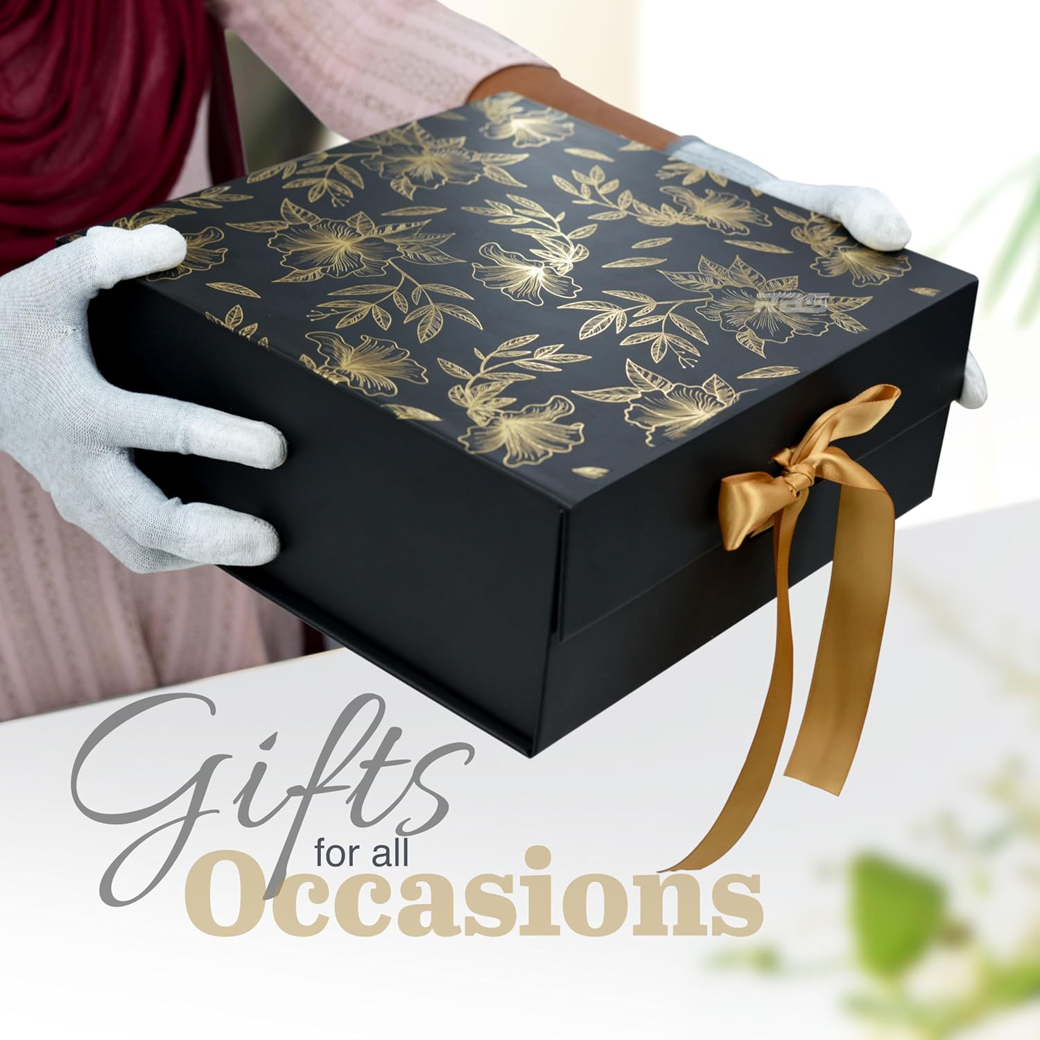 ✅ ✨🌟⭐ JUST LAUNCHED ⭐🌟✨ ELEGANT GOLD FLORAL FOIL DESIGN: Our black empty gift box features a stunning gold floral foil pattern, making it a decorative and sophisticated choice for presenting your gifts.