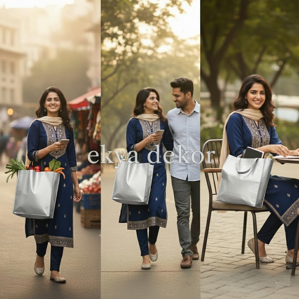 Made from premium-quality nonwoven material, these bags are eco-friendly, durable, and reusable—offering both style and sustainability. Their spacious design makes them ideal for holding gifts, clothes, books, cosmetics, and other essentials while ensuring they remain lightweight and easy to carry.