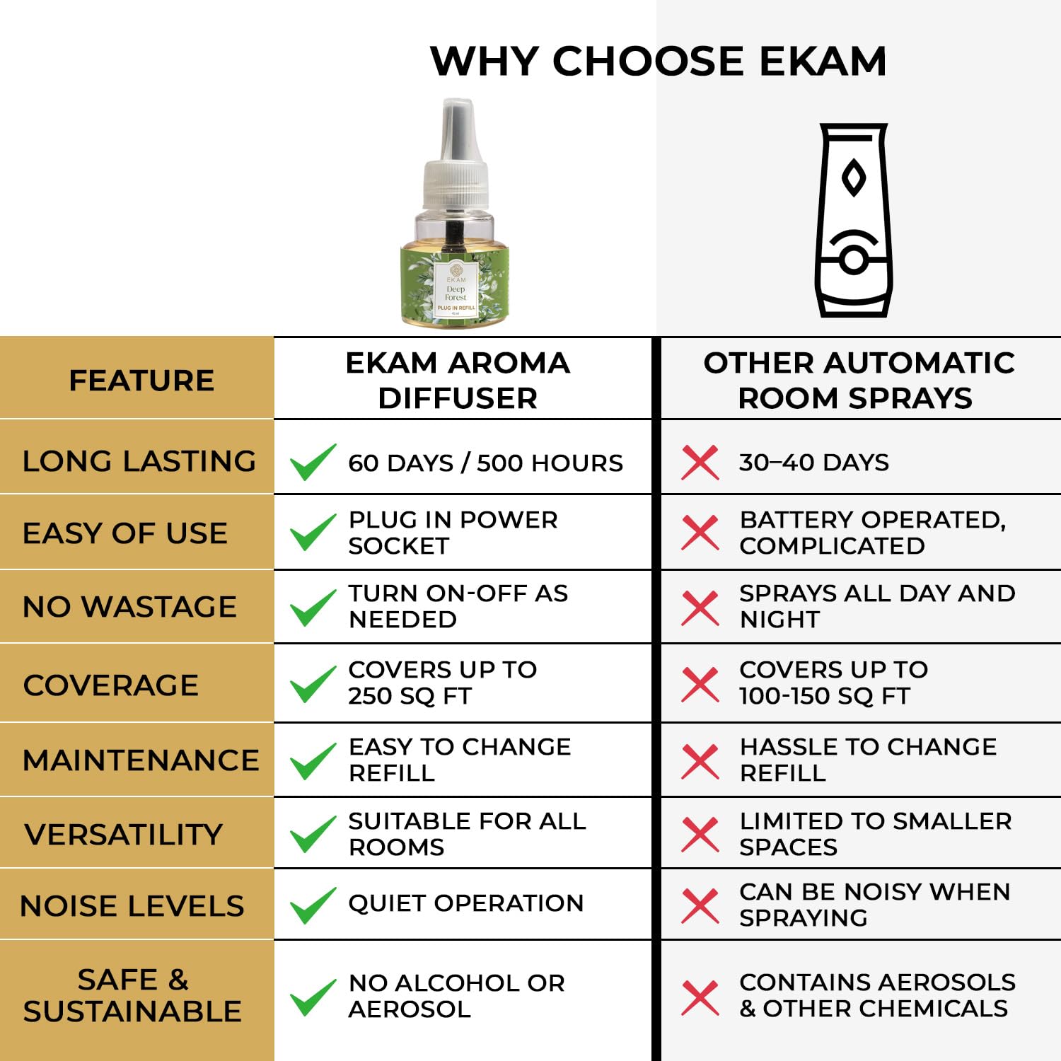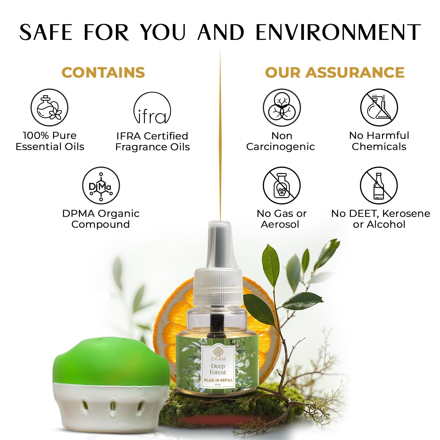 Quick & Hassle-Free Setup: Attach the 45ml refill to the EKAM plug-in device, turn it on, and enjoy a welcoming scent in minutes; fits many standard plug-in air freshener machines