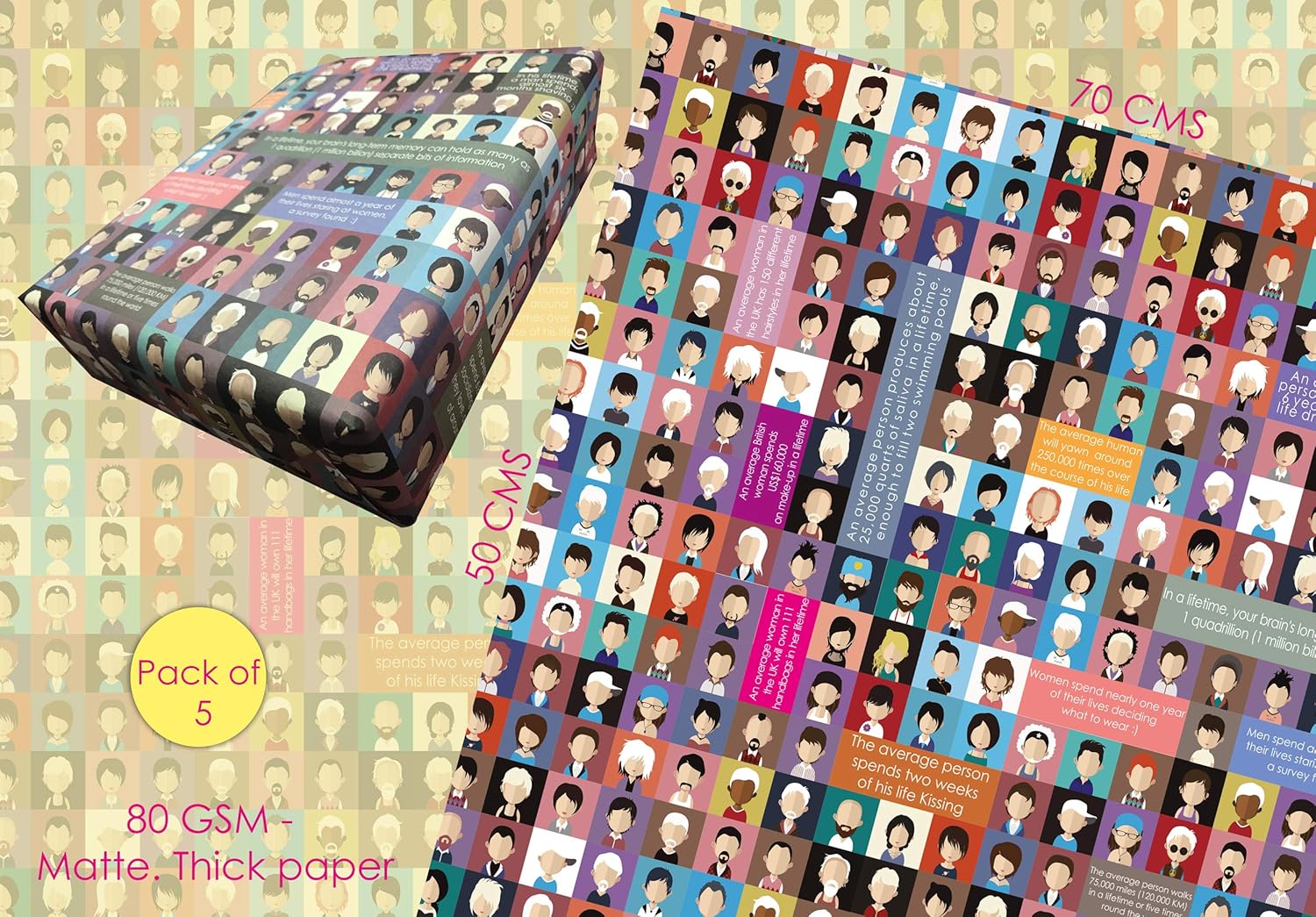 Innovative Gifting ideas for her and for him made unique and thoughtful with Human Faces pattern | neutral design of wrapping papers for all occasions with neutral theme gifting wrappers