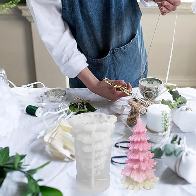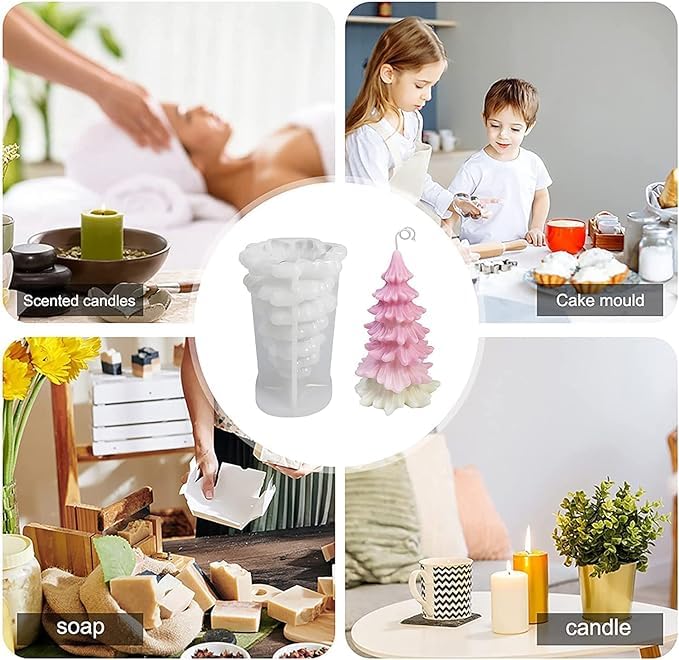 2 Pack Candle Making Moulds 3D Christmas Tree Candle Mould Silicone Making DIY Cake Soap Suppliesfor Handmade Gift Home Decration Craft DIY