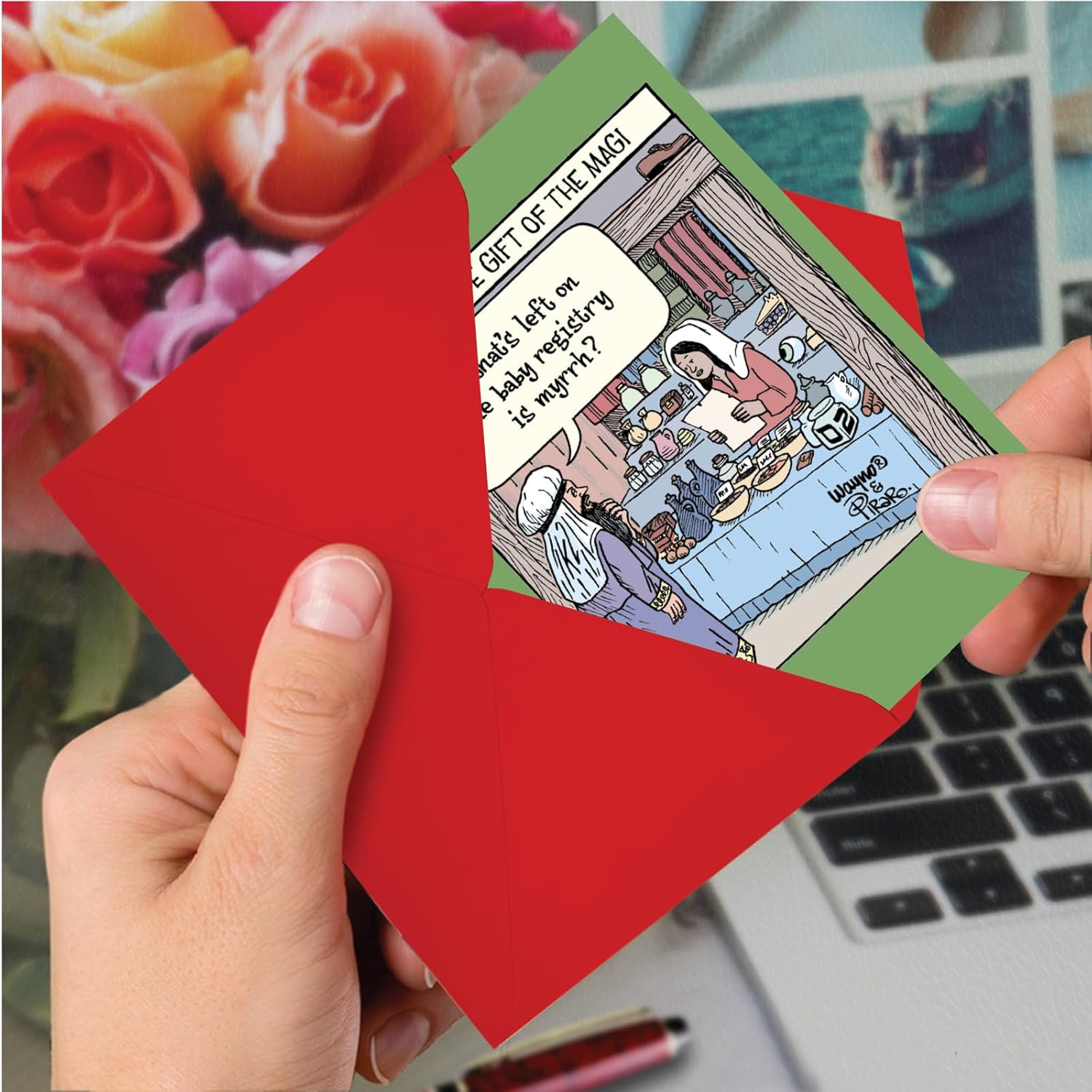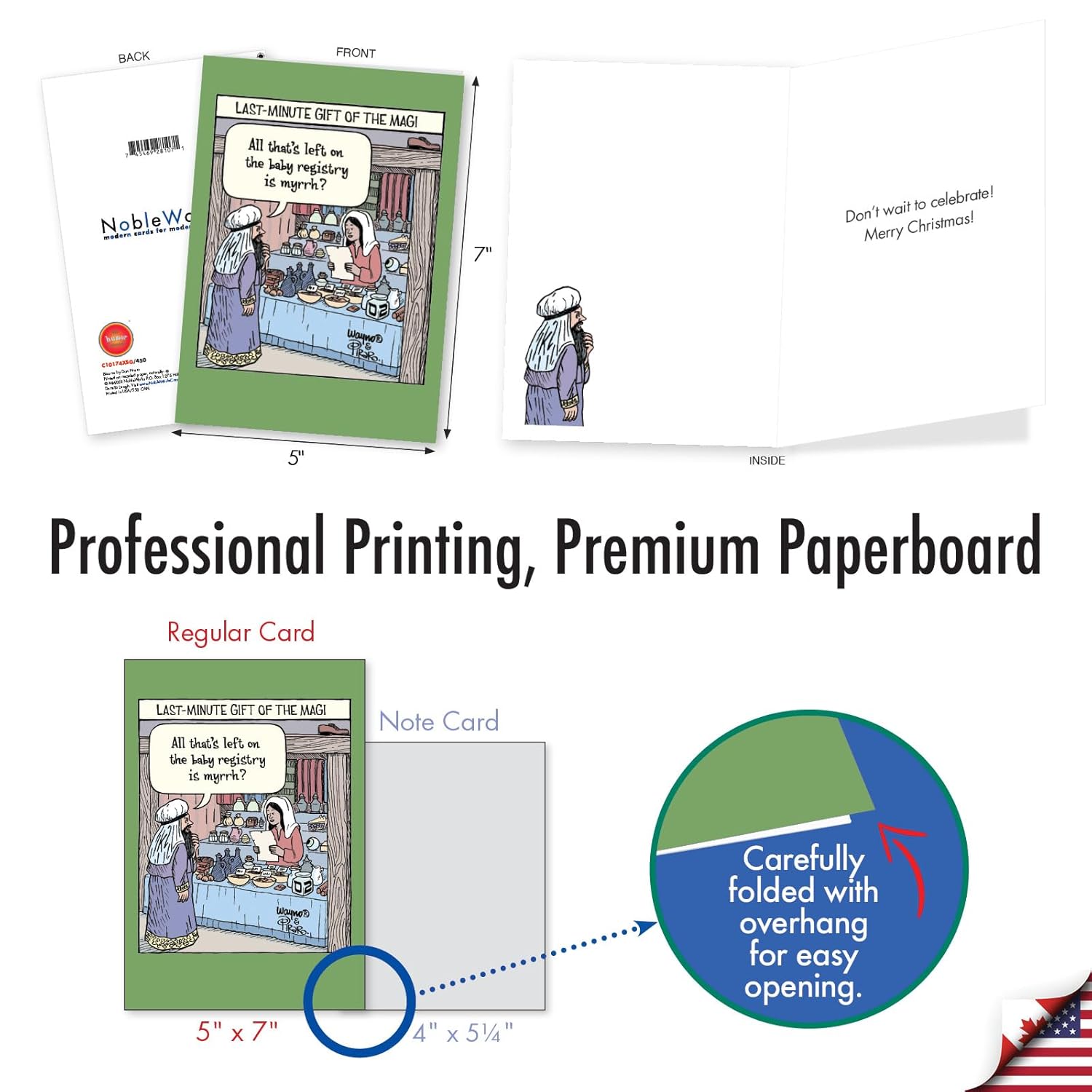 INSIDE GREETING: “Don’t wait to celebrate! Merry Christmas!” COVER – Last-minute gift of the Magi. All that’s left on the baby registry is myrrh?