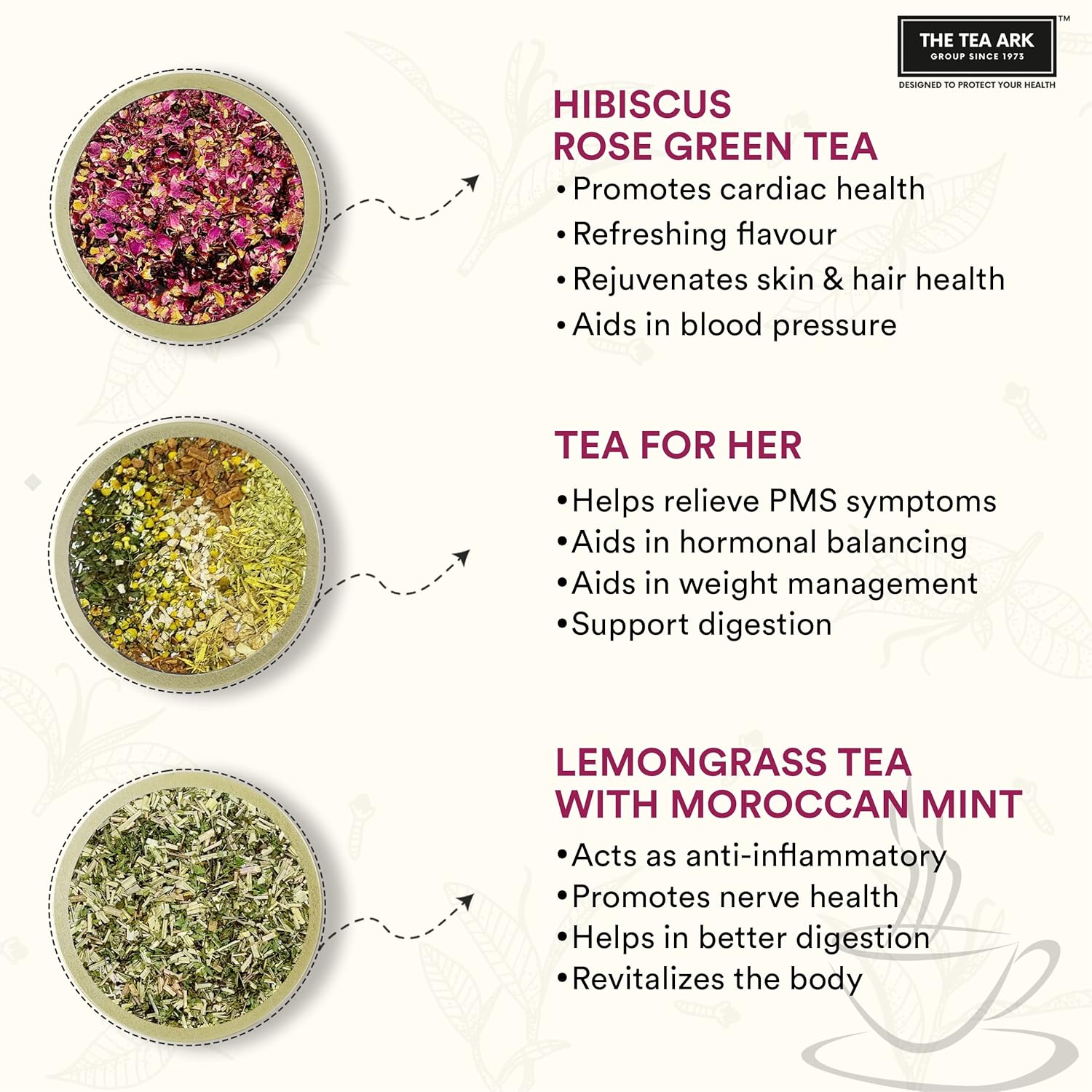 We are Tea Sommeliers on a quest to curate and serve exquisite healthy tea blends made from the finest flowers & rare herbs, sourced from across the globe. Let’s dive into the world of Luxury Wellness. WHY THE TEA ARK? | 100% Natural Ingredients Sourced from the best farms. No artificial colouring. Farm to table. Blended by veterans of tea. Made in small batches. Experience of over 49 years. Wide range of products. Customized to suit your needs.