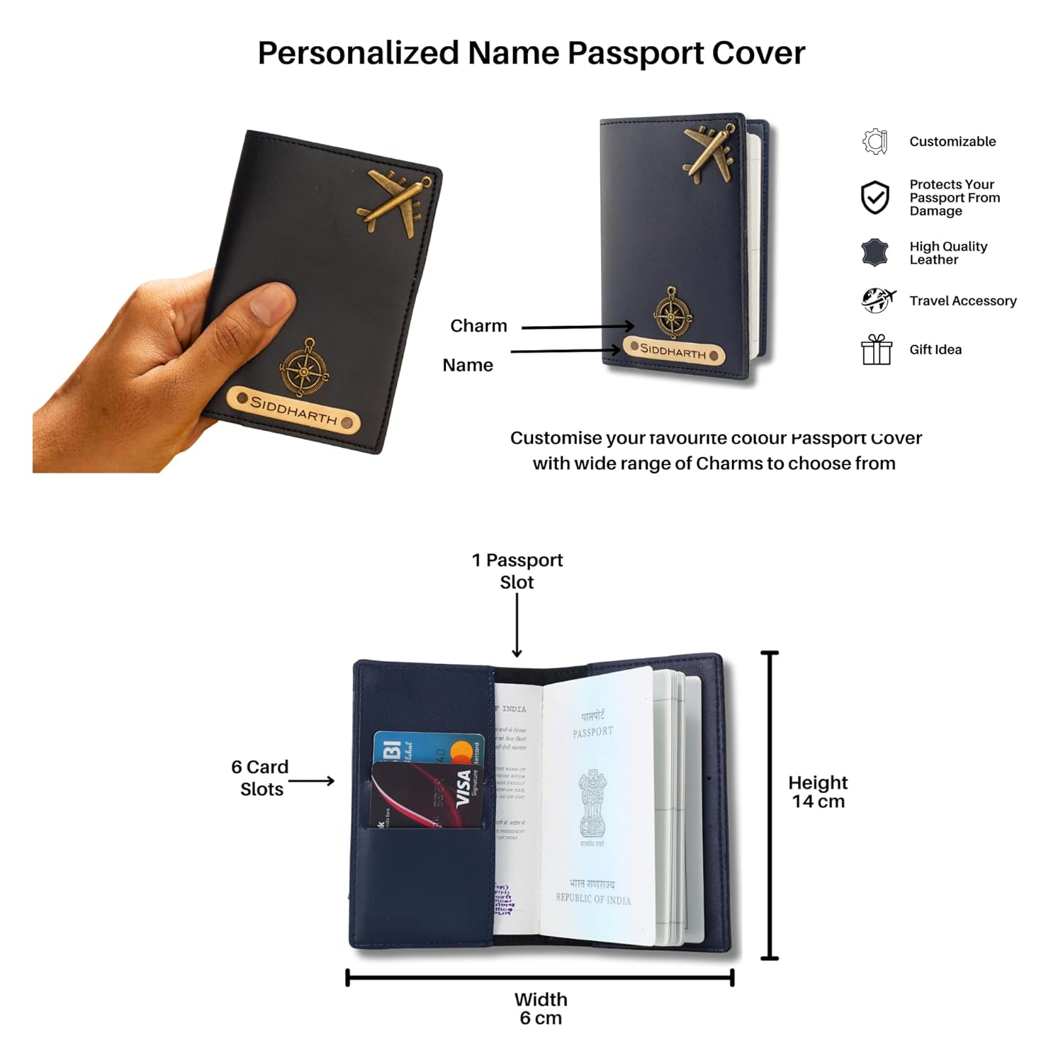 Passport Cover: Designed with 1 passport slot and 4 credit card slots, this passport cover keeps your important documents organized. With dimensions of 6″ x 3.8″, it’s a must-have for travelers looking for both style and functionality.