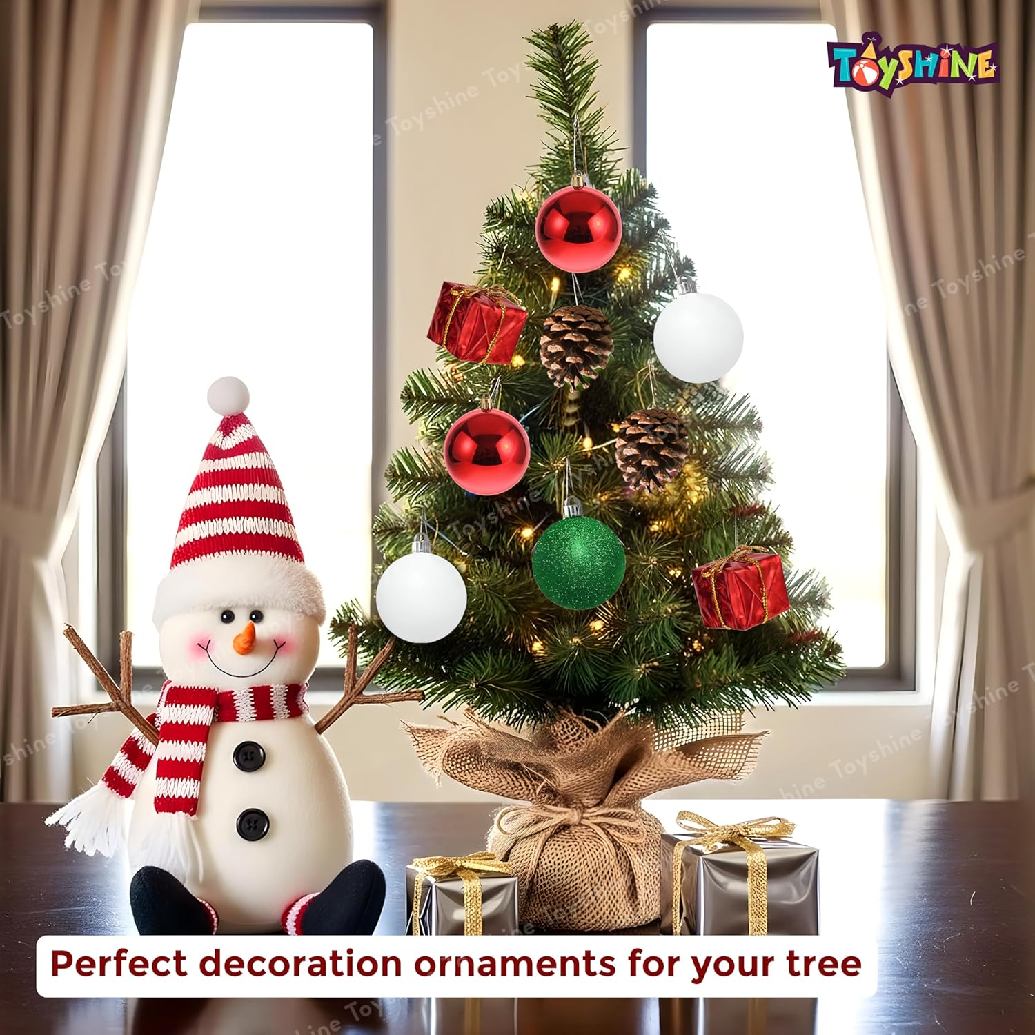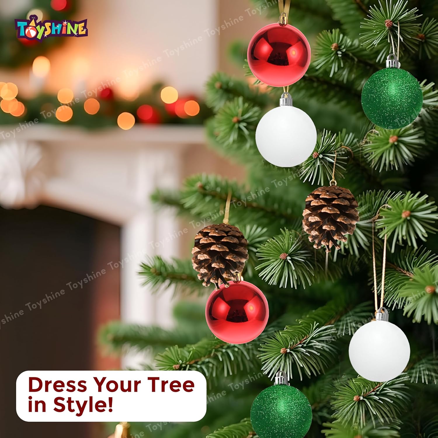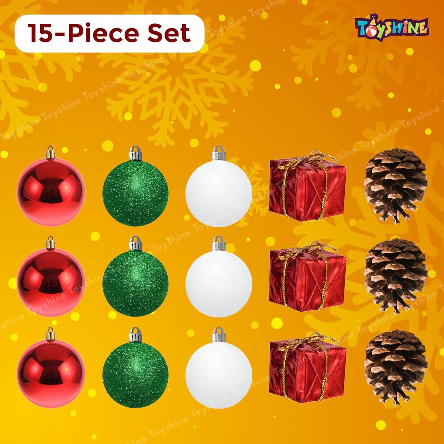 Celebrate the magic of the holidays with the Toyshine Christmas Decoration Set of 15 Ornaments. This carefully curated pack is designed to give your festive décor a traditional yet elegant touch with its red, green, and white theme.