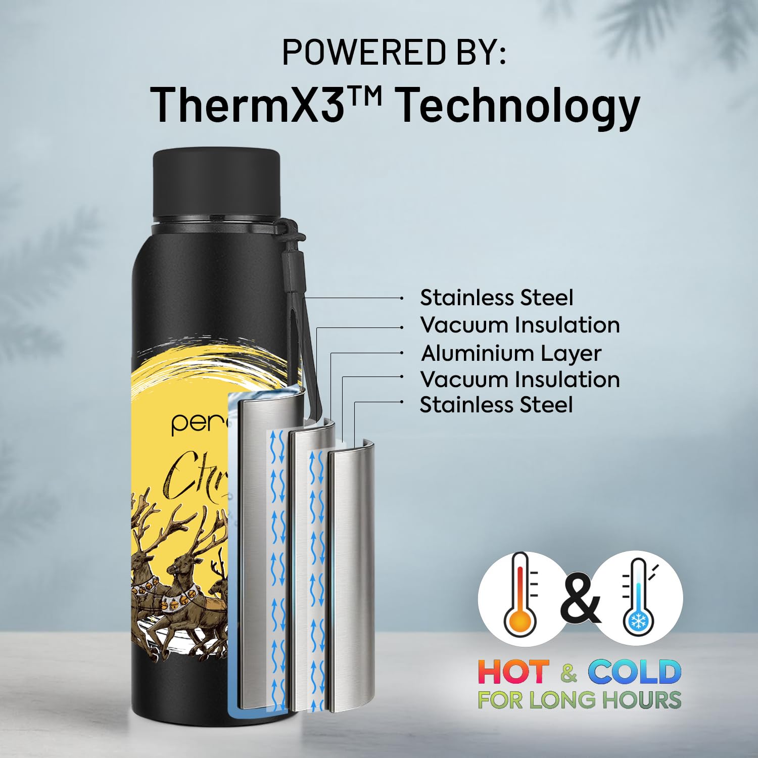 ADVANCED THERMX3 TRIPLE-LAYER INSULATION: Experience superior temperature control. Our smart vacuum-insulated technology features three distinct layers ThermX3 that create a powerful barrier, stopping heat transfer. This advanced design locks in temperature, keeping festive hot cocoa steaming or cold water refreshing for hours