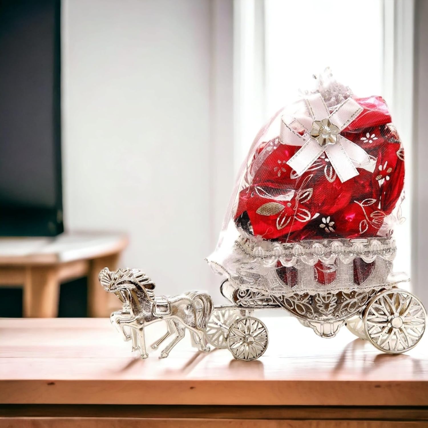 You can use this set of assorted chocolates as a gifting item for special occasions and festivities. You can also use this horse drawn carriage model as a piece of home decor.