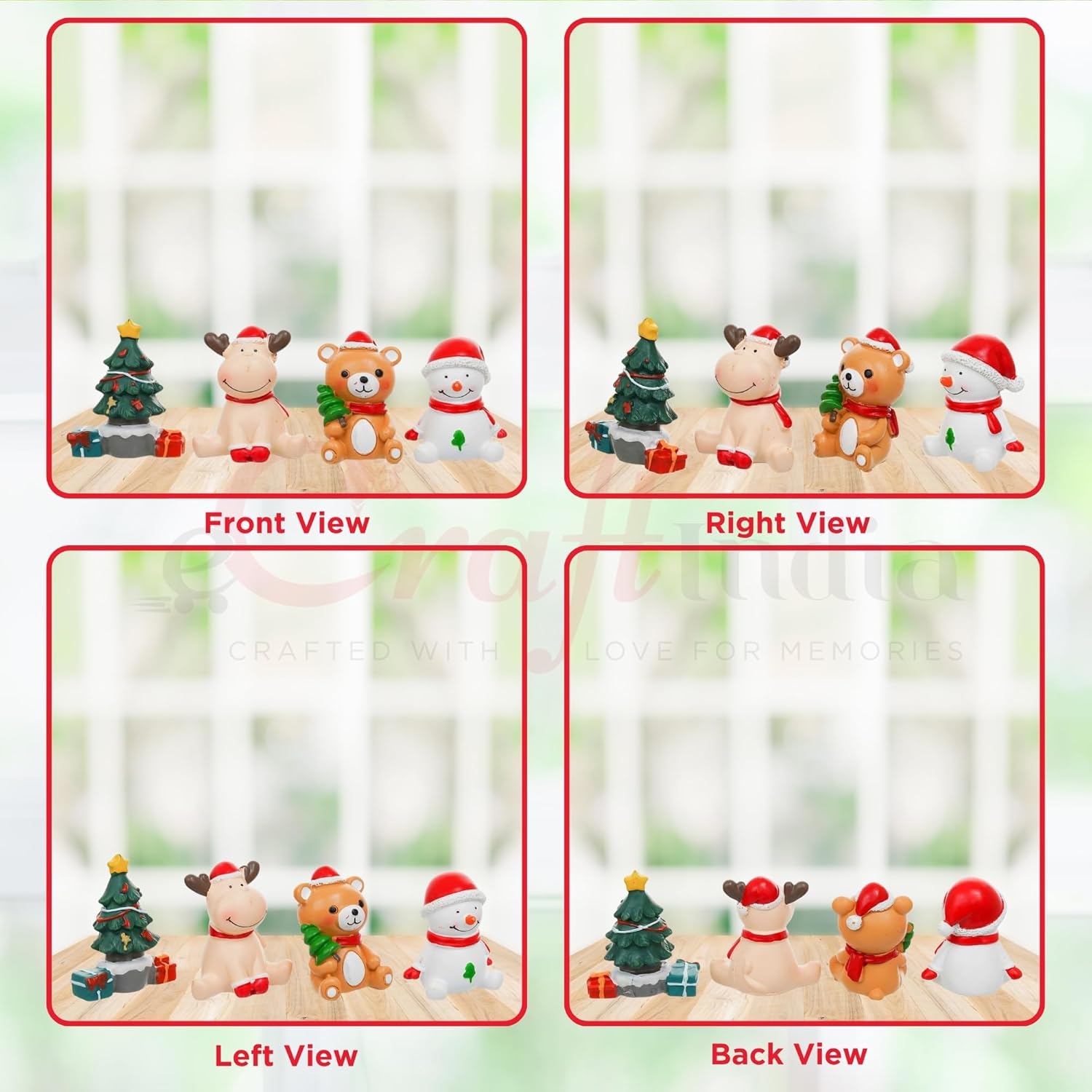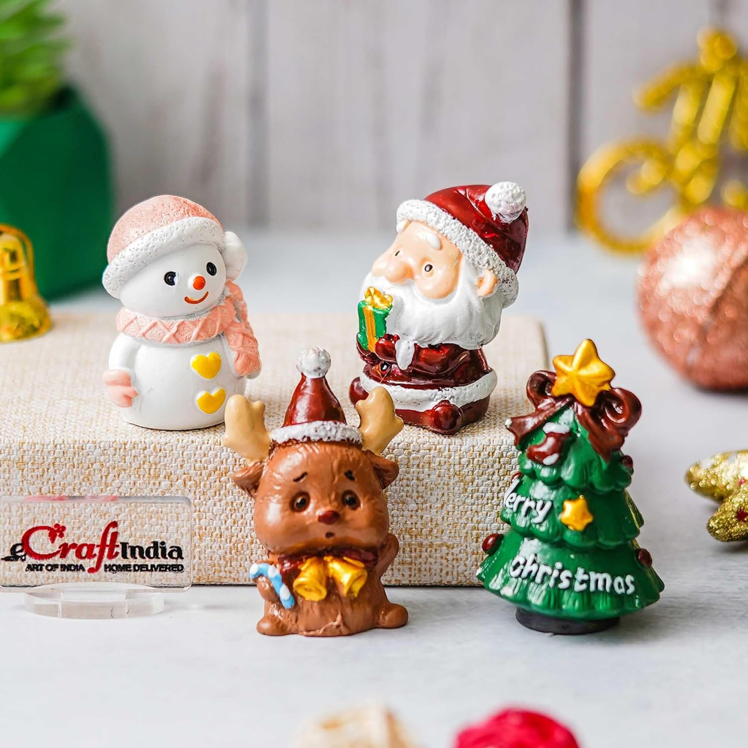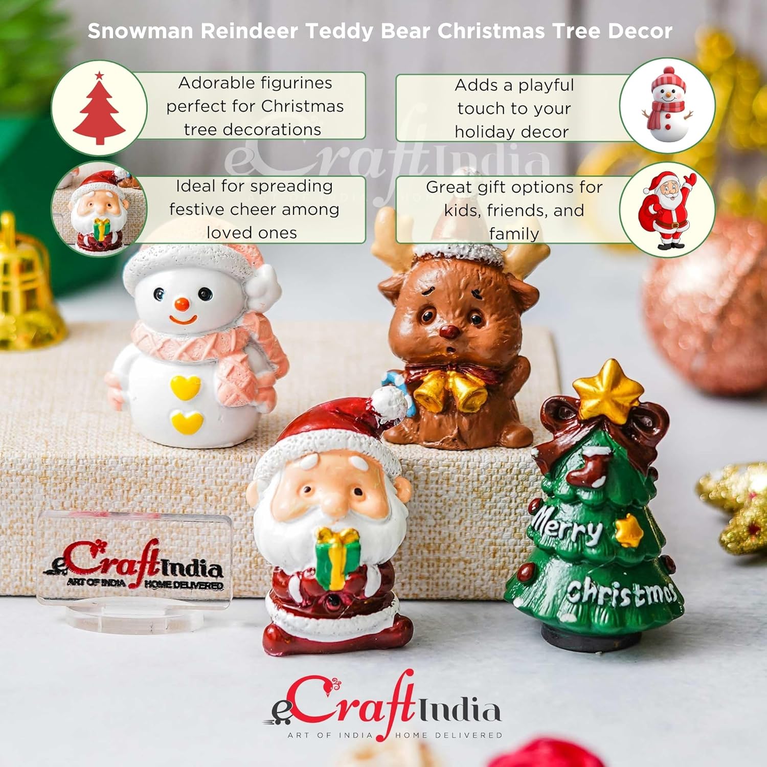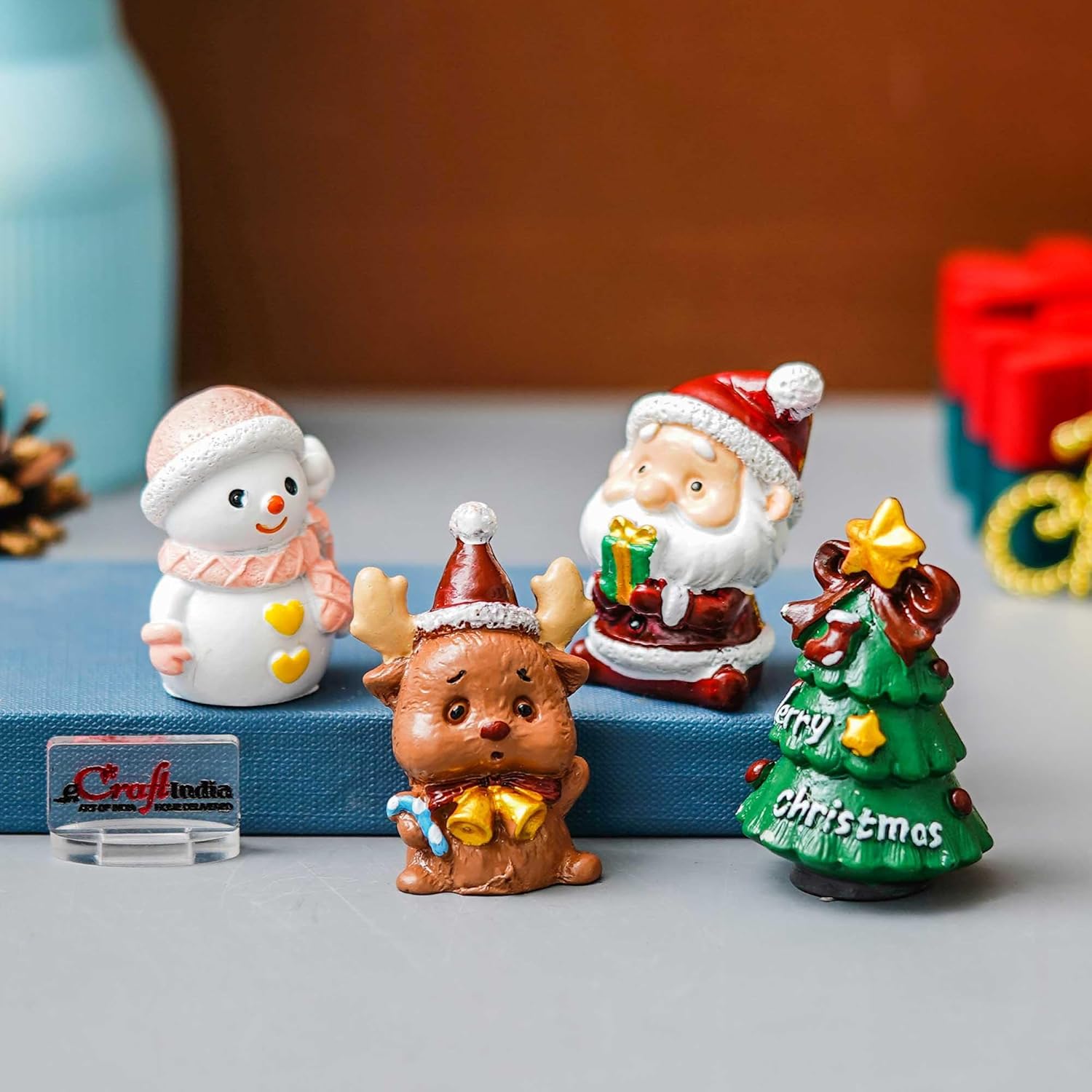 Infuse your holiday spirit with these adorable resin figurines Christmas home decor, a Snowman, Reindeer, and Teddy Bear. Perfect as Christmas decoration items, they add a whimsical touch to your home or office and serve as delightful Christmas ornaments and Christmas props for festive displays
