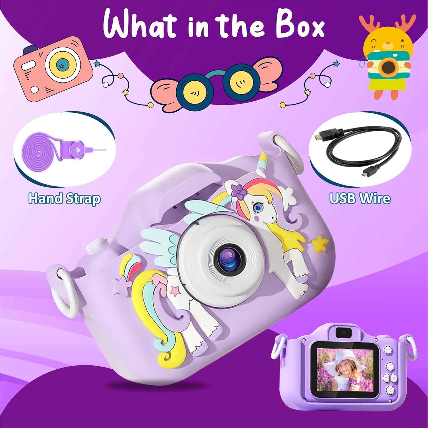 🦄 【High Solution】The Kids Camera with 2.4 inch HD screen & 24 million pixels HD Dual lens both front and rear & 1920x1080P video – its the best kids video camera and toy camera for children’s happiness.
