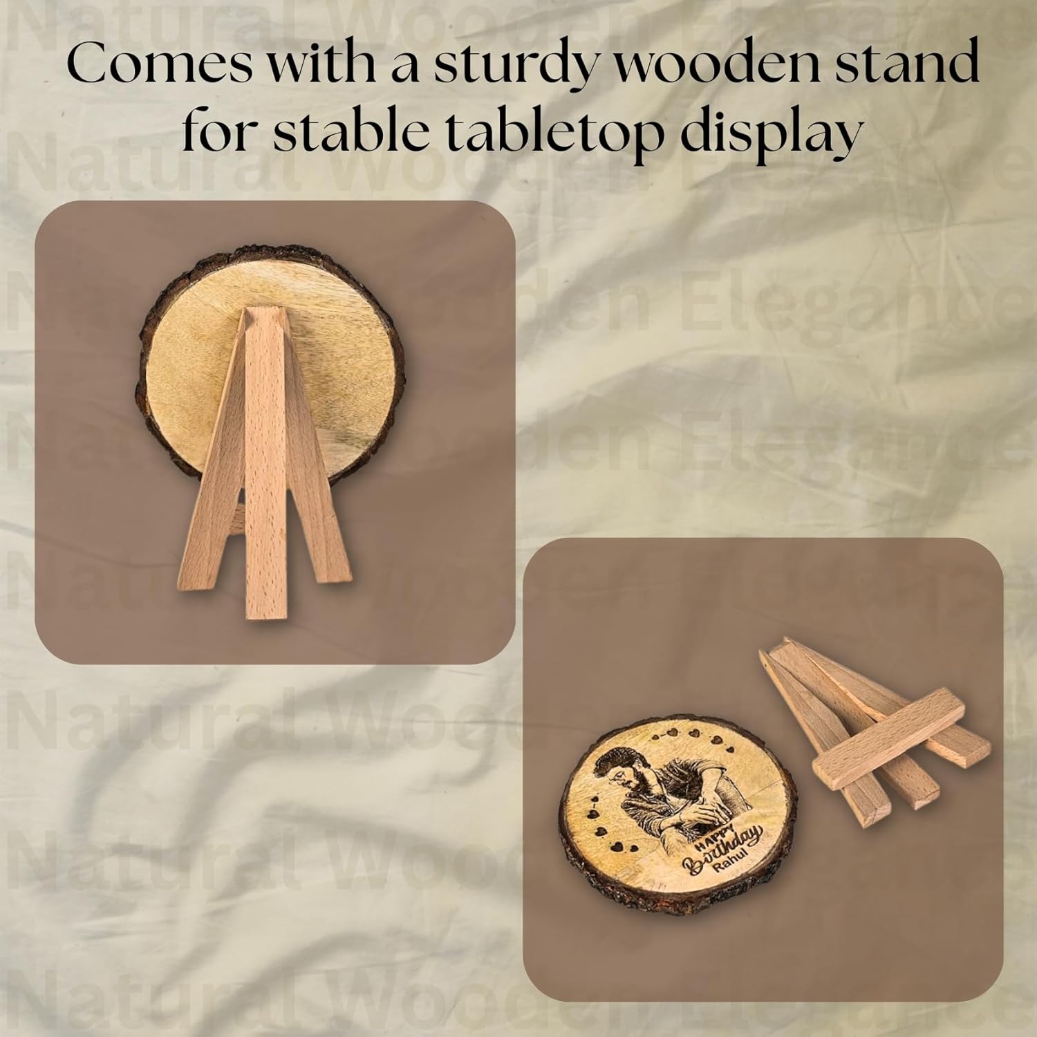 Wood Stand : These frames come with a Wood back Stand,which provides great stability and support, that allows them to stand upright even on flat surfaces.