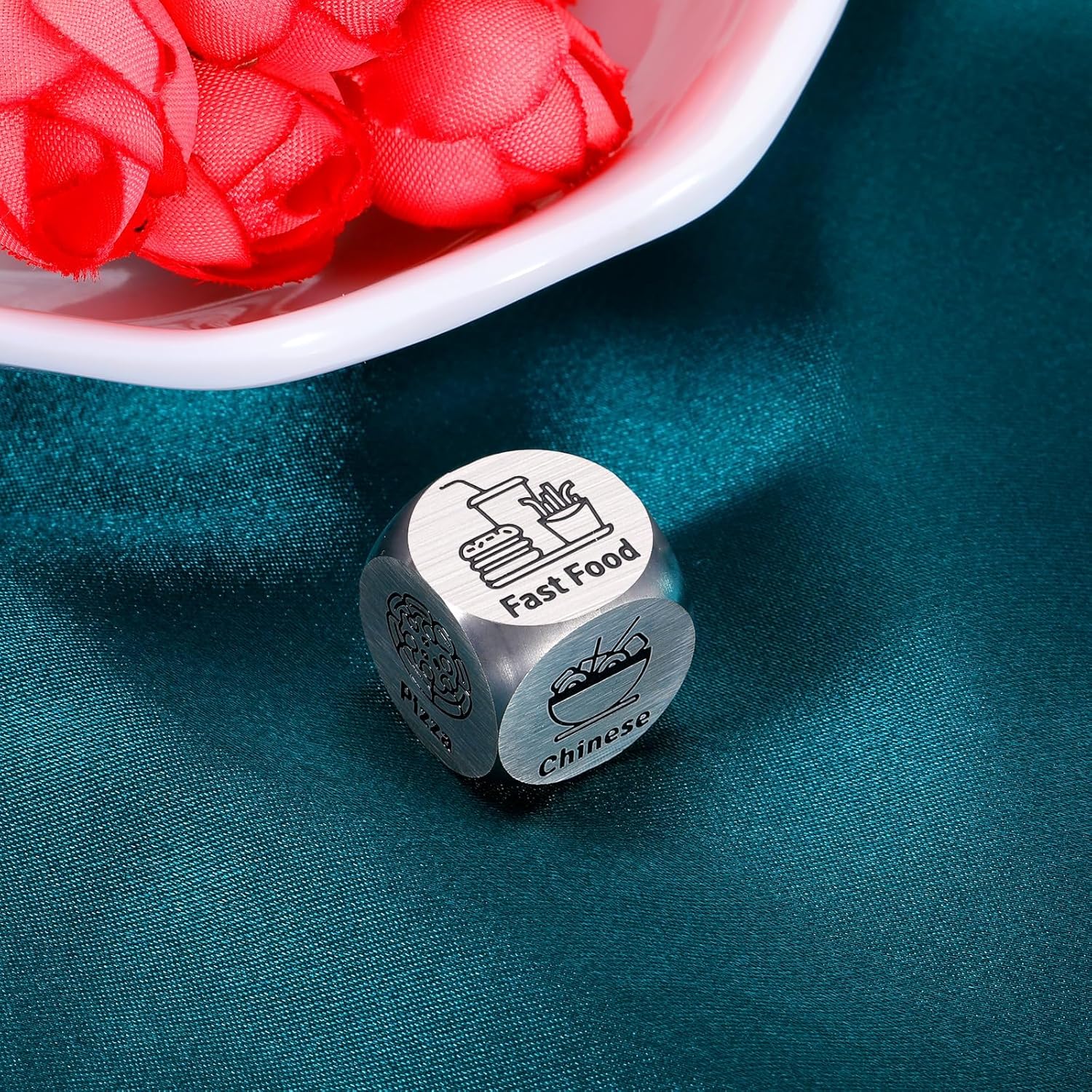 Food Dice for Couples – You still don’t know what to eat with your boyfriend/girlfriend when dating? Let this food decision dice decide for you! This food dice gives you 6 choices: Fast Food, Steakhouse, Mexican, Pizza, Chinese, and Sushi. Each one engraved with six different patterns will be a perfect dating gift idea for you to send him/her! It’s a romantic date gift idea for couples.