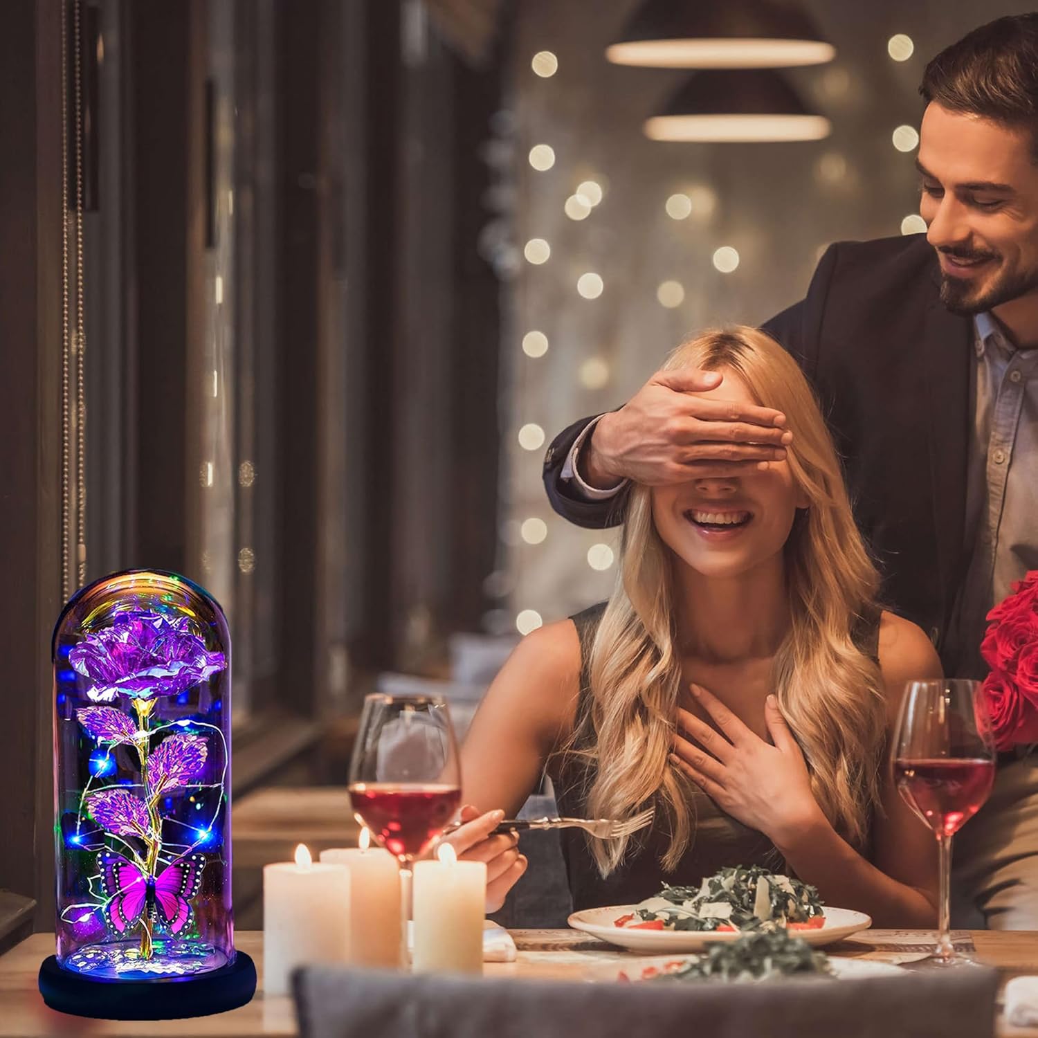 Valentines day gifts: This flower lamp seamlessly combines artistry with functionality, merging the beauty of roses with the delicacy of glass and a dome. Wrapped around an led strip light, powered by 3 AAA batteries (not included), it emits bright warm lighting. The led rose light is versatile, creating a good atmosphere both in daytime and nighttime. A symbol of appreciation and best wishes for the special woman in your life.
