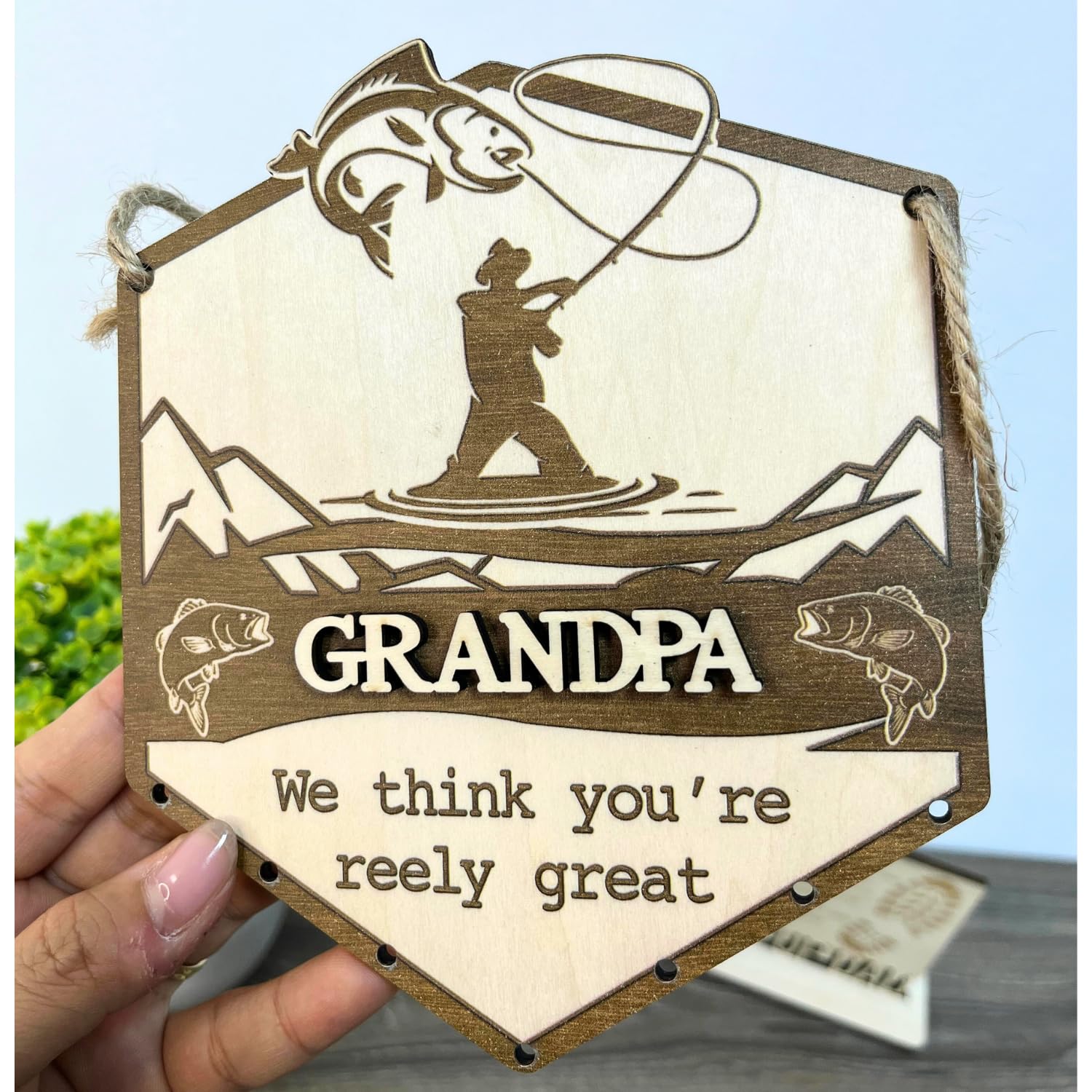 Rustic and simplicity Style: It has a rustic charm and natural beauty, suitable for decorating home and living room or working place. This wooden sign is a perfect gift for your fisherman Grandpa