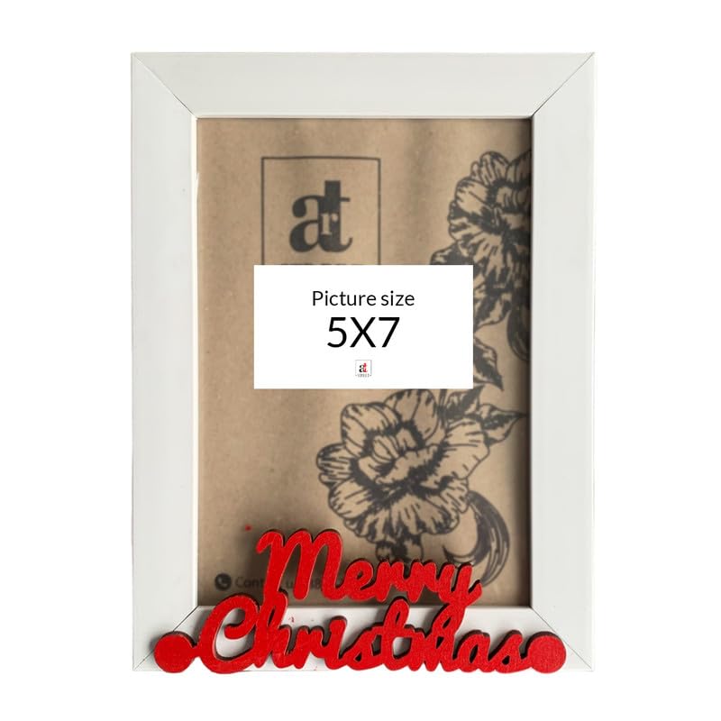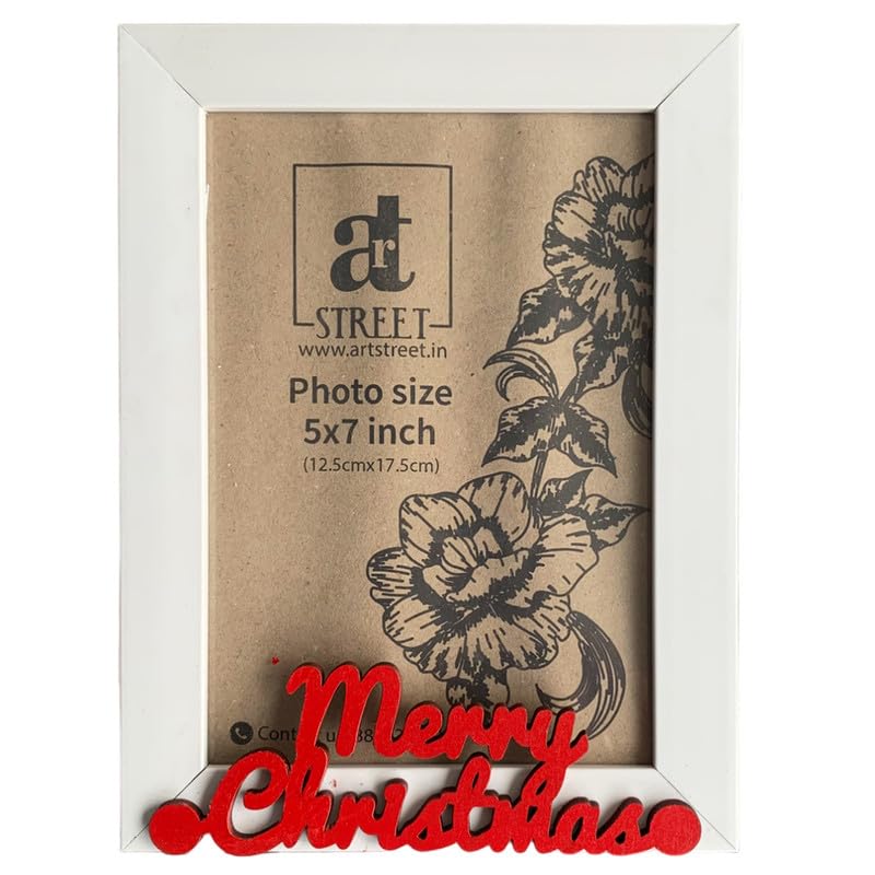 Art Street Merry Christmas MDF Cutout Photo Frame, Christmas Gift For Friends, Family, Relatives, Gift For Brother, Sister, Mom, Dad, Christmas Photo Frame (White, 5×7 Inch)