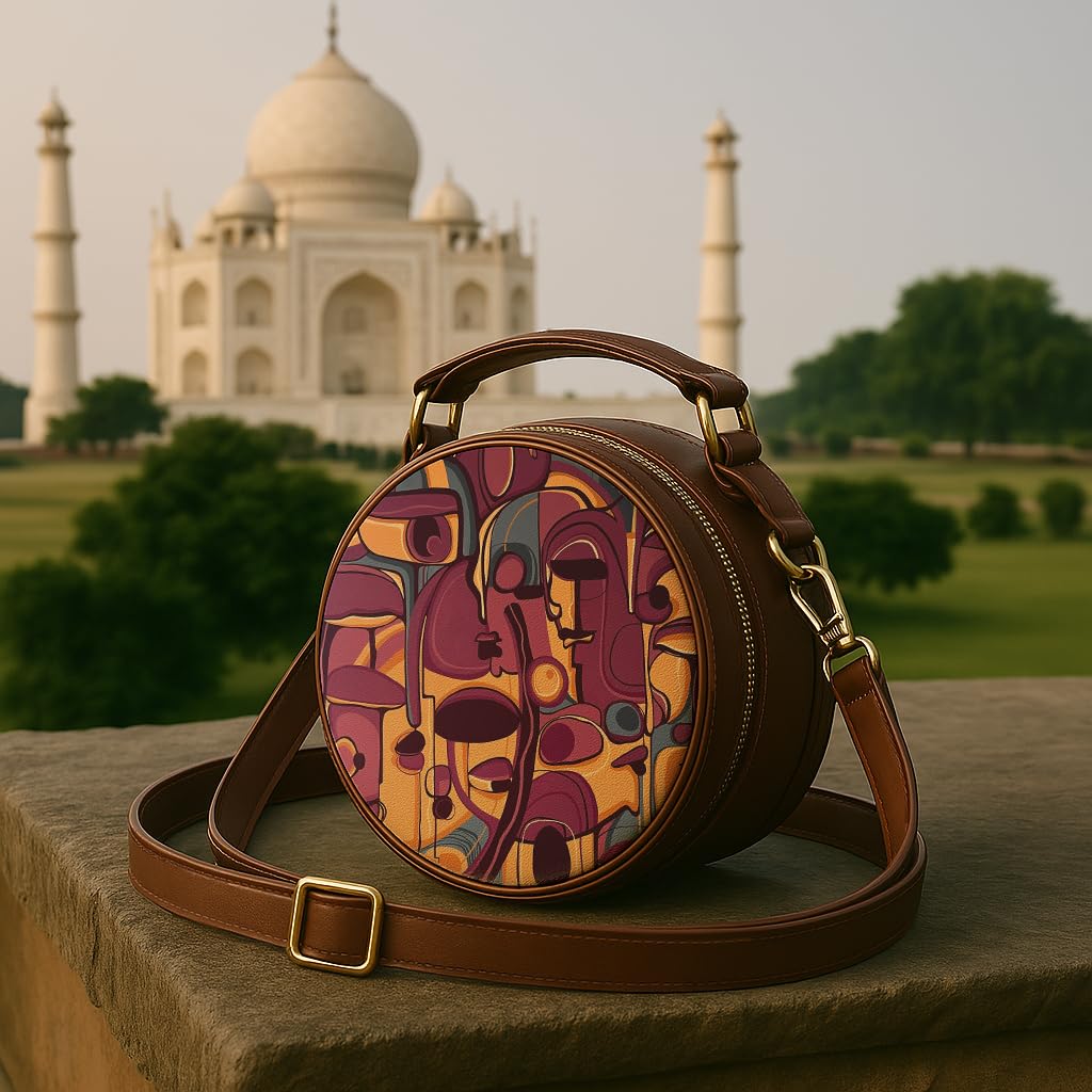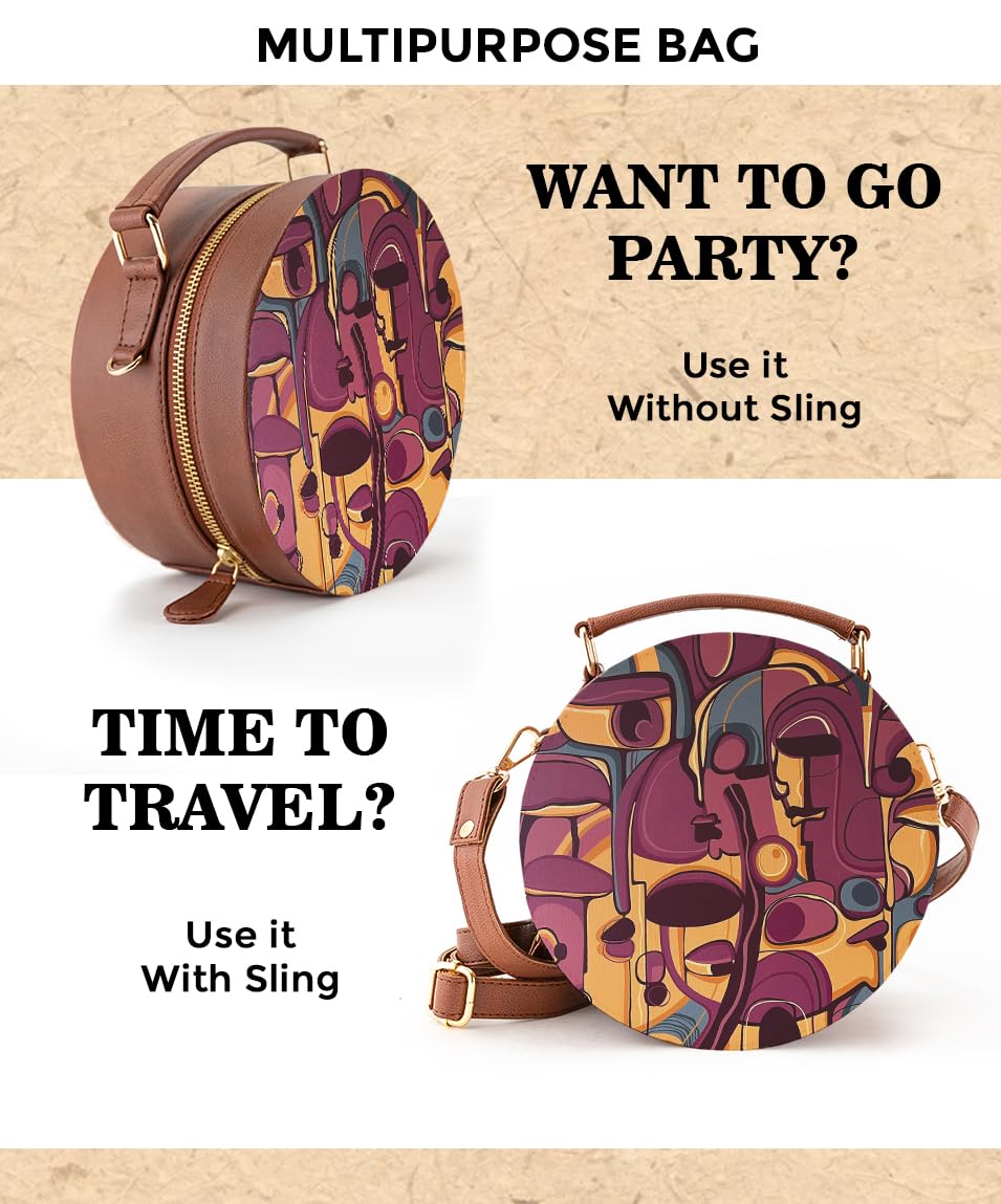 The Kalānkit Crossbody Round Sling Bag for women features a metallic zipper closure, ensuring the safety and security of your belongings. This chic round box sling bag features a robust handle that ensures a comfortable and secure grip, making it effortless to carry with confidence.