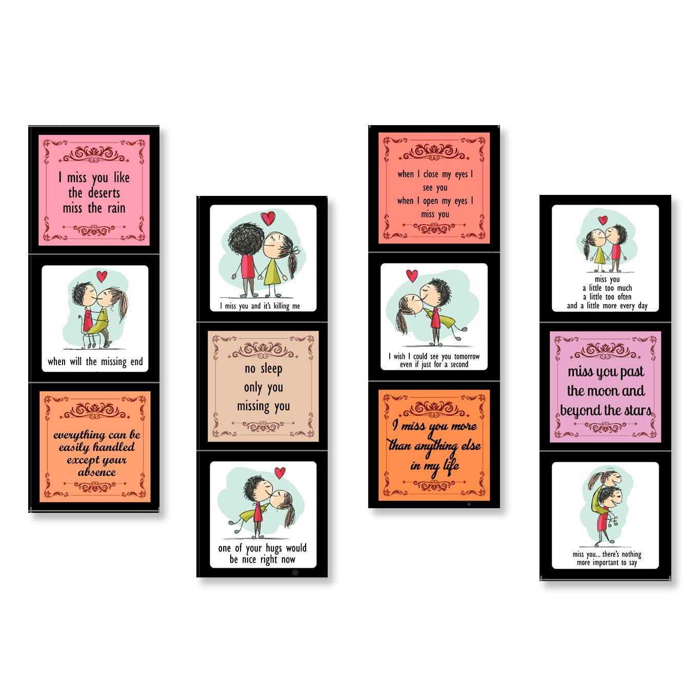 This box of sentimental messages and captions for your special one makes a unique gift for expressing how much you miss them. The popup strip has messages and cute images on both sides printed on high-quality paper and nicely stacked inside the little box.