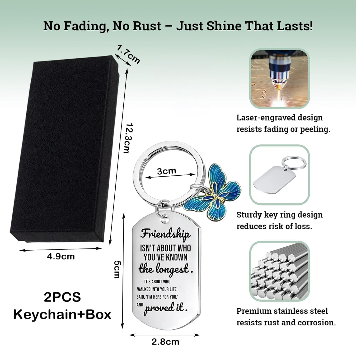 Celebrate the special bond between sisters and best friends with our stainless steel sister keychain. This elegant and durable keychain is designed to be a meaningful keepsake, perfect for gifting on birthdays, Christmas, anniversaries, or any special occasion. Crafted from high-quality stainless steel, it is resistant to tarnish and rust, ensuring long-lasting beauty. The included gift box adds a touch of elegance, making it ready for gifting. Compact and lightweight, this keychain is easy to carry with keys or attach to bags, making it a practical yet sentimental accessory for daily use. Show your appreciation and love to your sister or best friend with this heartfelt gift that carries big emotions and cherished memories.