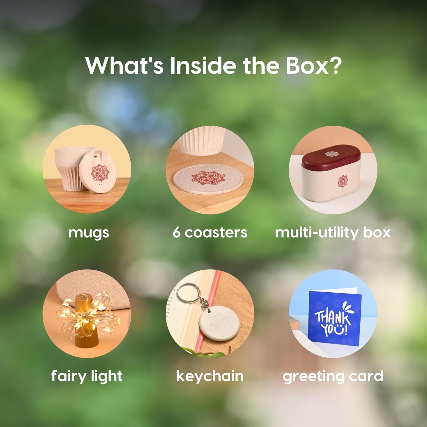 EARTH FRIENDLY – Made from repurposed rice husk and eco-safe binders, this sustainable gift set supports circularity and reduces waste. All items can be reused or recycled, making it a conscious festive choice.