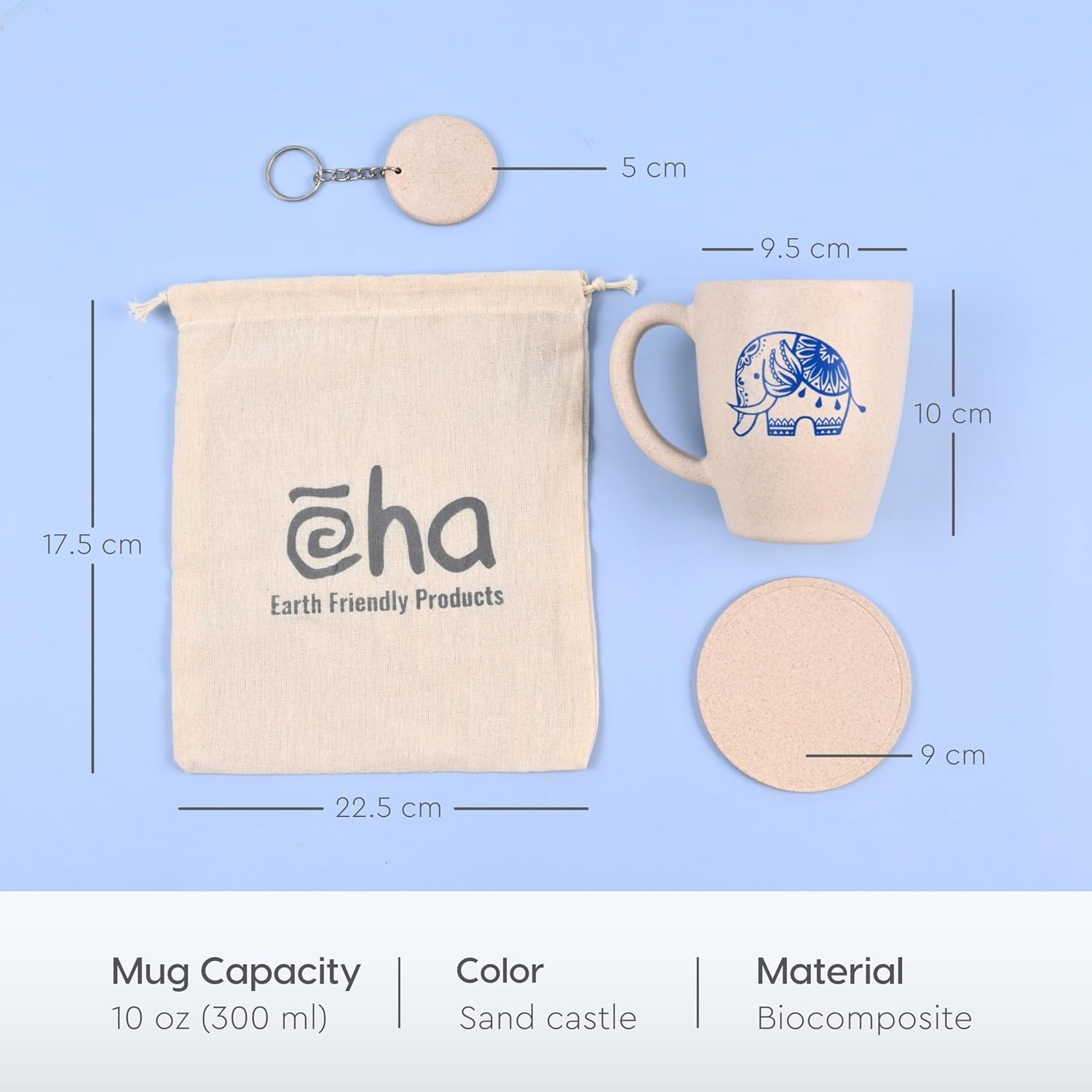 GIFT SUGGESTION: This cute coffee mug is a top choice for its design and aesthetic appeal. This beautifully curated gift hamper includes 1 printed mugs, coaster, key chain, & card. Crafted from rice husk and bamboo fibers in natural colors, these mugs enhance your coffee-drinking experience. They also make a perfect gifting solution, combining love and care for nature.