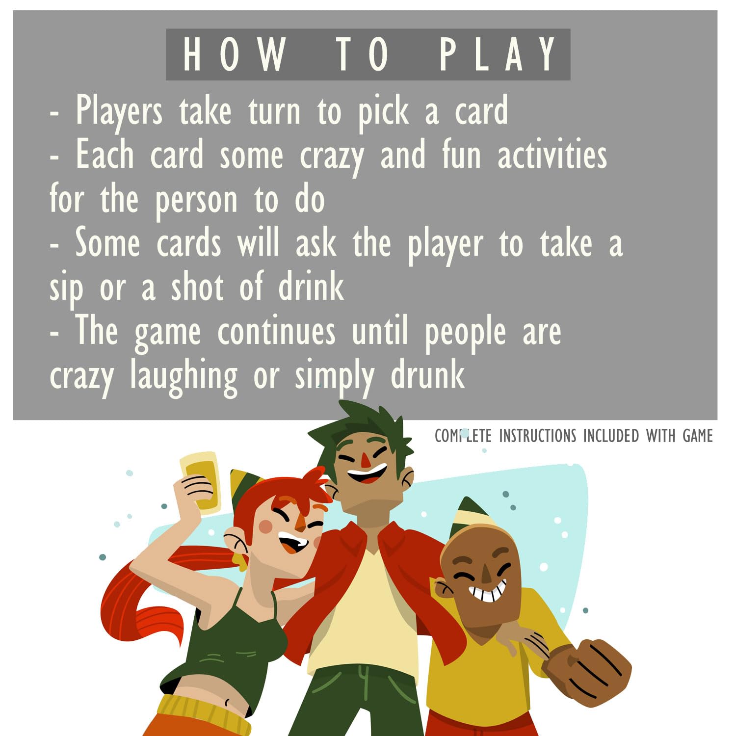 How to play: Everyone picks up a card from the deck in sequence and answers questions, completes dares, votes for someone or does whatever the card instructs. There are cards that allow a player to skip a drink or force someone else. There’s also cool trivia on alcohol spread throughout the cards. Each round results in someone or the other drinking until eventually everyone’s drunk.
