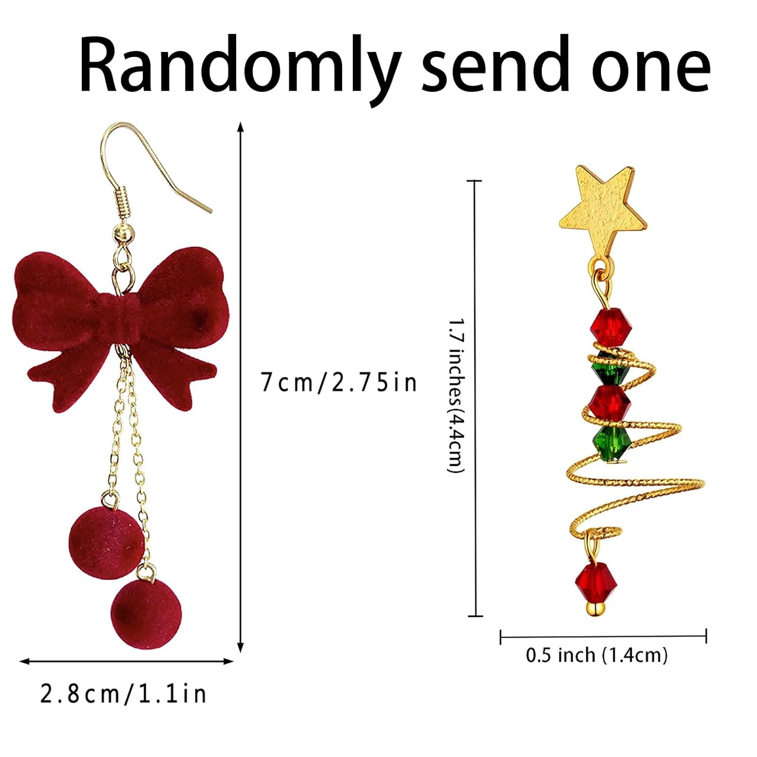 Christmas Earrings for Women, Christmas Earrings, Red Bow and Star Style Random, Family Gatherings, Holiday Gifts