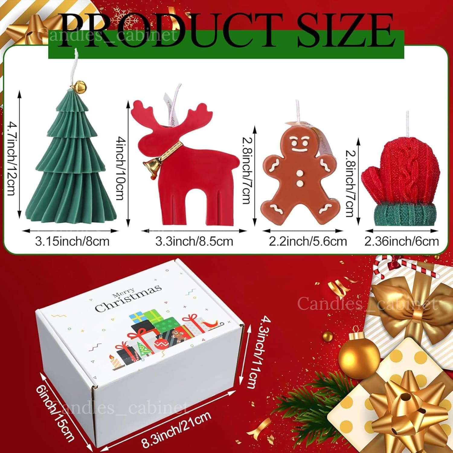 4 Shape Designs: this holiday candles bulk features with 4 different designs, including elk, Christmas tree, gingerbread man and glove, which allows for a variety of aromatic experiences and can keep the holiday atmosphere fresh and vibrant throughout the season