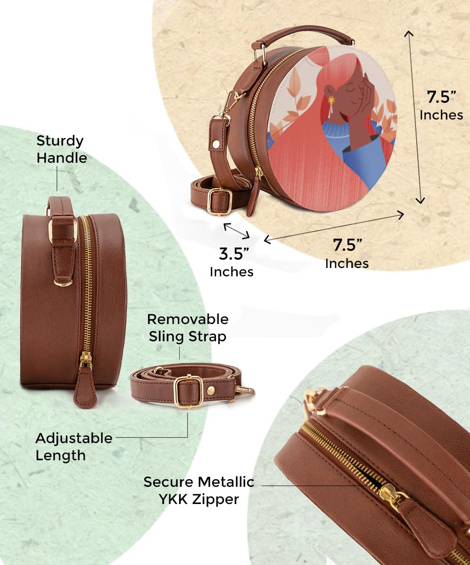 The Kalankit Crossbody Round Sling Bag for women features a metallic zipper closure, ensuring the safety and security of your belongings. This chic round box sling bag also includes a robust handle that offers a comfortable and secure grip, making it effortless to carry with confidence—perfect for both everyday use and stylish outings. Its compact yet spacious design makes it ideal for carrying essentials without compromising on elegance.