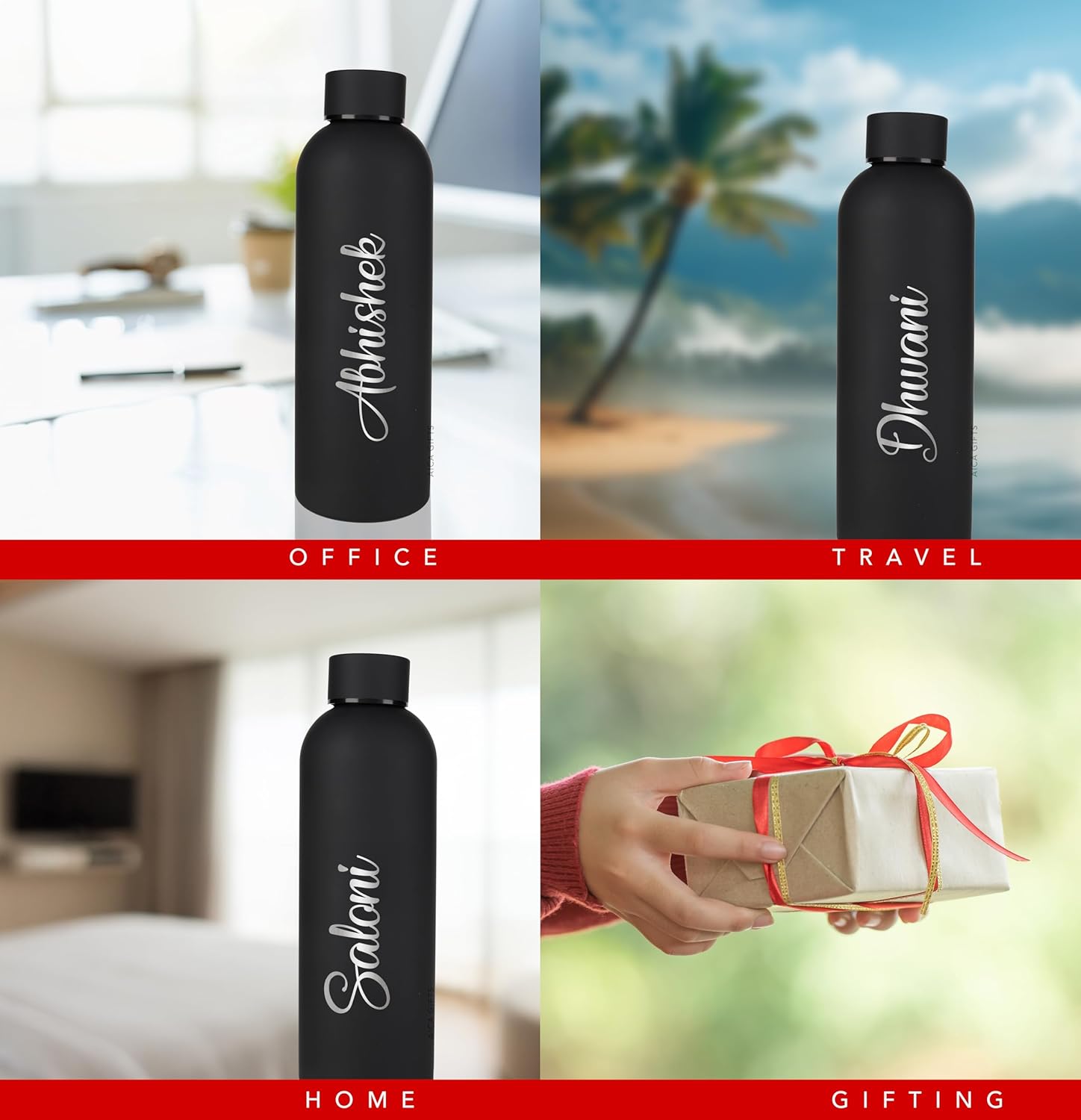 AICA Personalized Name Stainless Steel Water Bottle