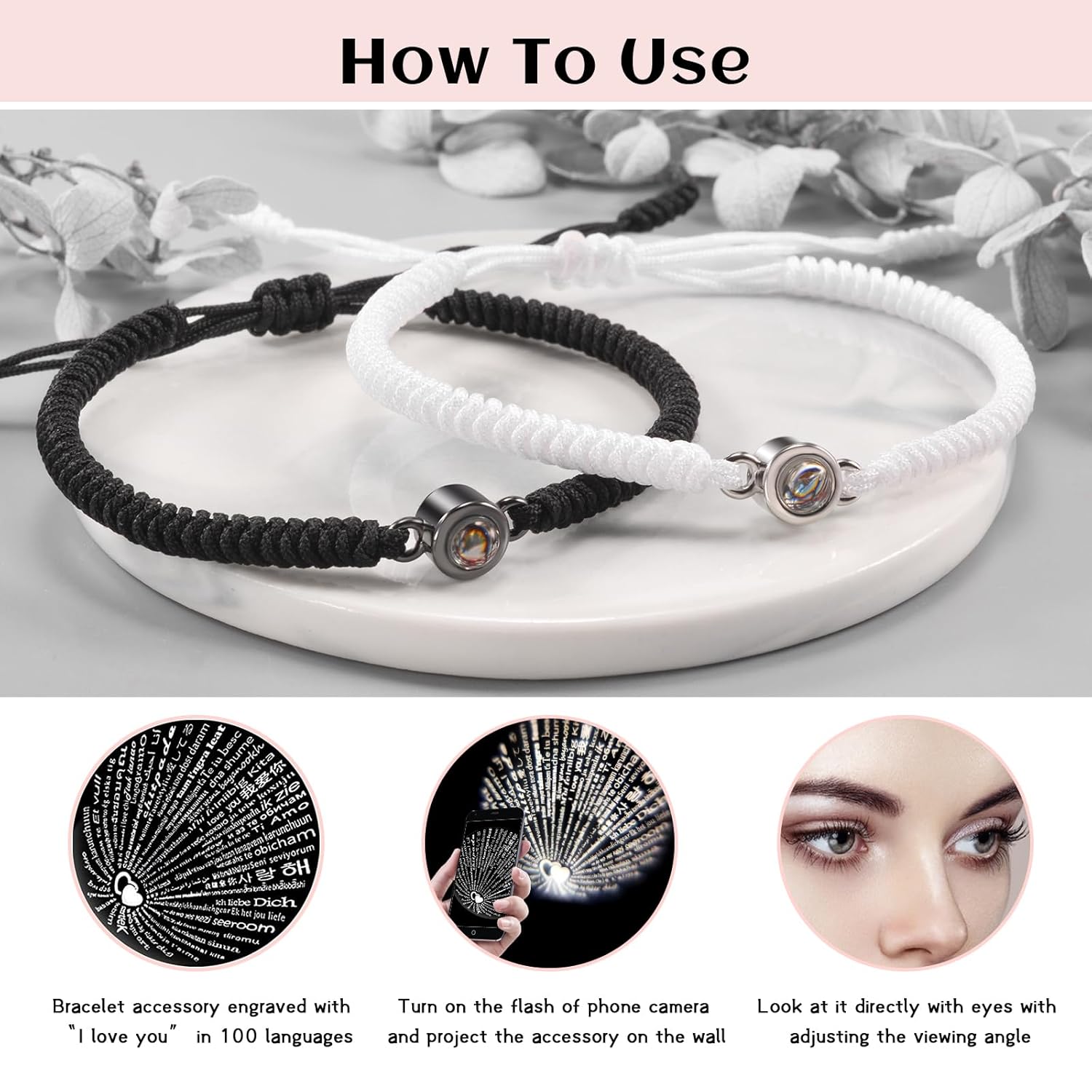 Product Name: PZXHRY Couples Bracelets Matching Bracelets For Couple Anniversary Him and Her Long Distance Relationship Gifts for Girlfriend Boyfriend Husband Wife Birthday Soulmate I Love You in 100 Languages Includes: 2 * Matching Bracelet for Couple, 1 * Pinky Promise Card, 1 * Jewellry Bag Special Design: The accessories of the couple bracelet contain “I love you” in 100 different languages, the matching bracelets symbolize the eternal happiness and bond between couple, what a romantic gift for him and her, even friends, sisters Size: This couple bracelet is hand-woven from high quality nylon cord, sturdy and durable, adjustable size 7“-11”, fits most people’s wrist Occasion: Comes with a meaningful card and beautiful jewelry bag, making it a meaningful gift for your significant other, boyfriend, girlfriend, husband, wife, soulmate, family members. Surprise your significant other with a couple gift on birthday, anniversary, Valentine’s Day, Christmas, or any special occasion. This presents for couple will make you more eye-catching