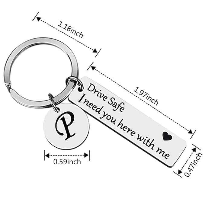 Drive safe i need you here with me :This keychain will make an elegant gift for your boyfriend / husband. It’s a great gift for anniversary, wedding, Valentine’s Day or to celebrate that special day in your life!The keychian design with 26 letters as name abbreviation for the
