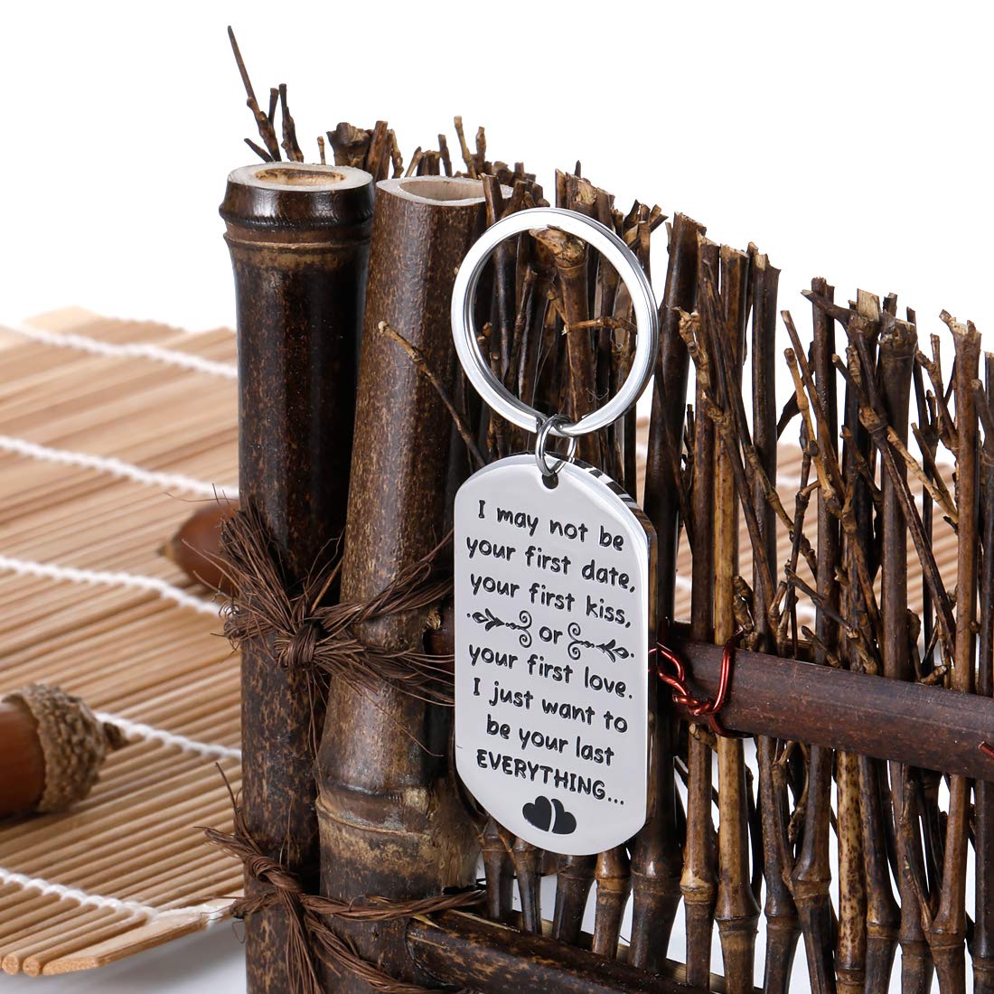 ☀Couple Gifts Keychain: Engraved “I may not be your first date. Your first kiss, or your first love. I just want to be your last everything…” keychain. I love you gifts for girlfriend boyfriend wife husband.