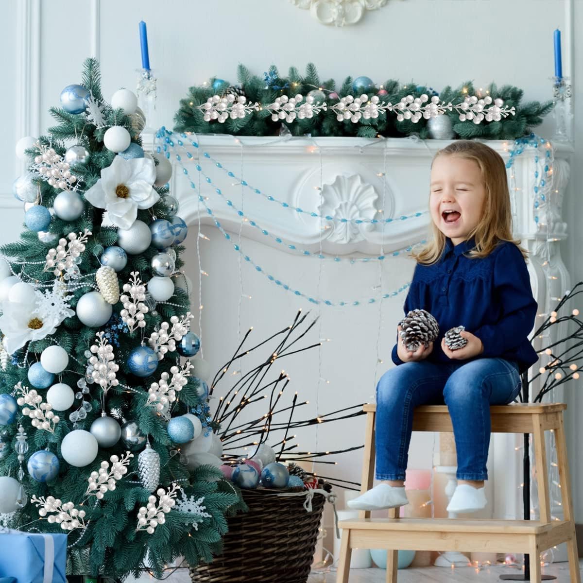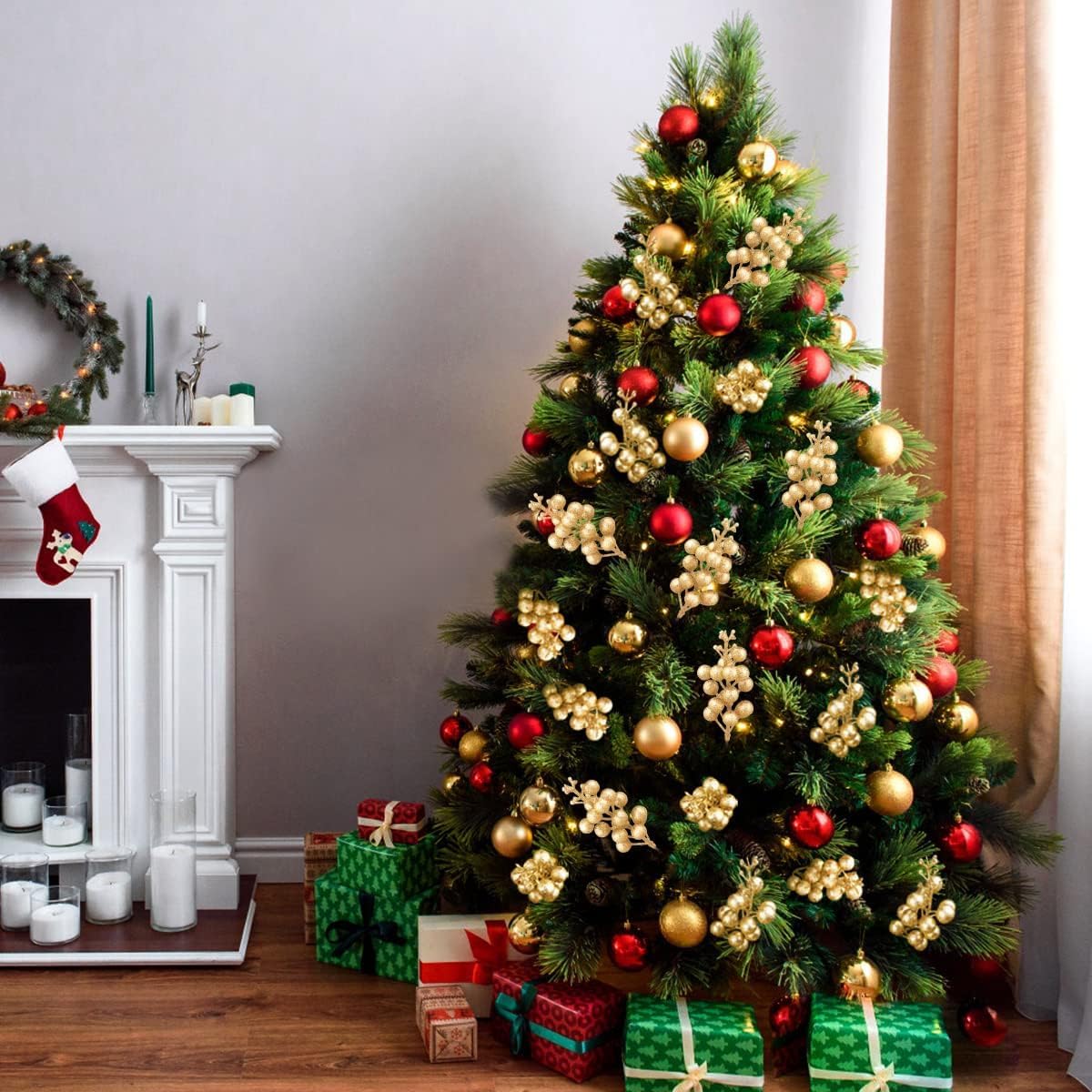 Package Includes: Come artificial Christmas berry stems,and each faux berry with glitter berries. The diameter of the berry is 0.5 inches and stem length appro 8.26 inch, Add a few of these into your Christmas floral arrangements, plain wreaths, swags, garlands or Christmas trees to add a Christmas festive atmosphere.
