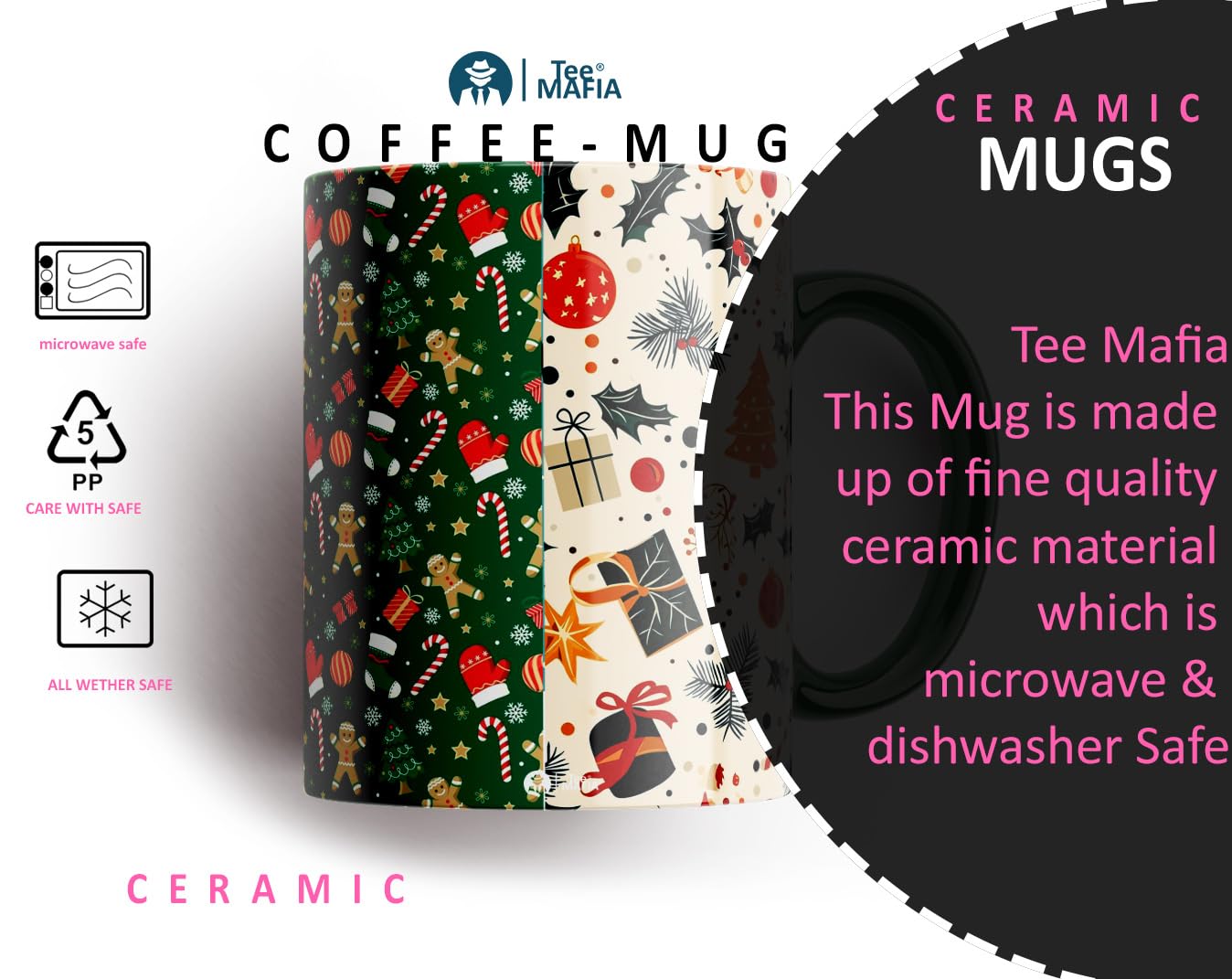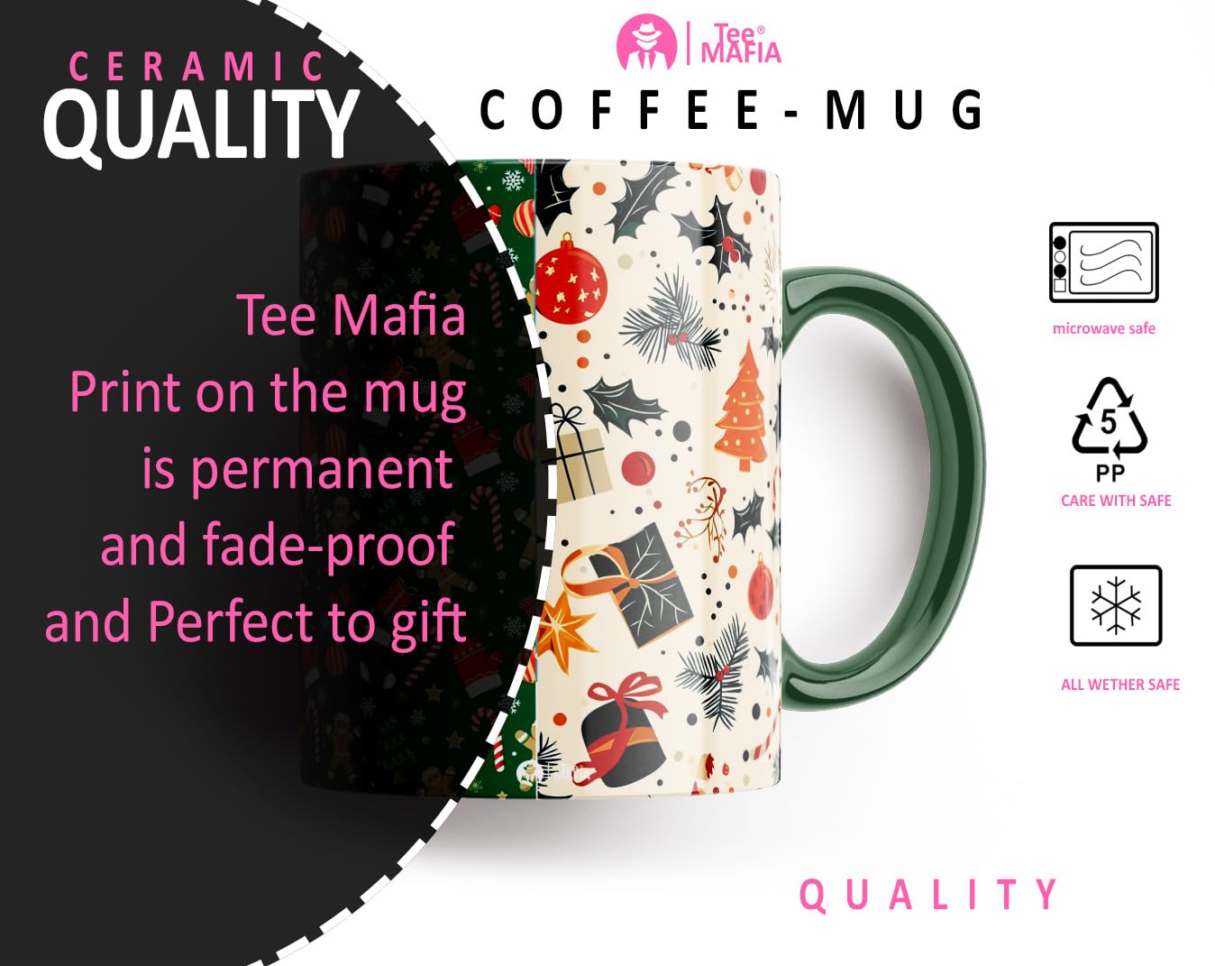 Merry Christmas Printed Coffee Mug for your loved ones. Can’t think of gifts for your wife, husband, boyfriend, girlfriend, friends, kids, co-worker or lover. Tee Mafia offers beautifully crafted and professionally printed amazing quality ceramic mugs, suitable to gift on any occasion to your dear ones. Unique & trendy design mugs available at your doorstep. Useful an thoughtful gift for your mom, dad, girlfriend /boyfriend or your counter parts or friends, best friends, sister/brother, co-worker, husband/wife.
