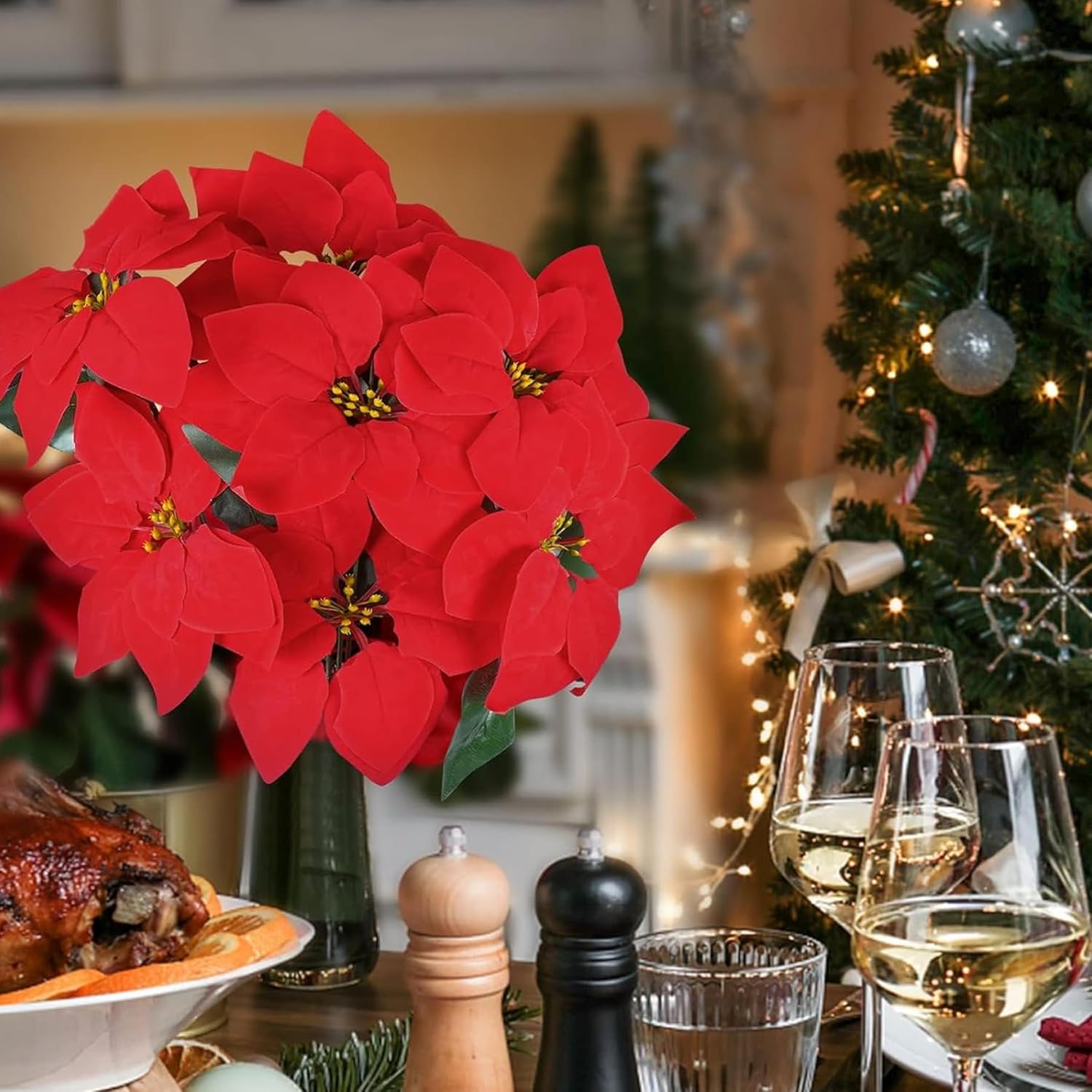 Home Decor : Artificial poinsettia flower stems are easy to decorate, adjust, or stick on the Christmas tree, Christmas cane or rattan, Christmas wreath, as photography props, wedding decoration